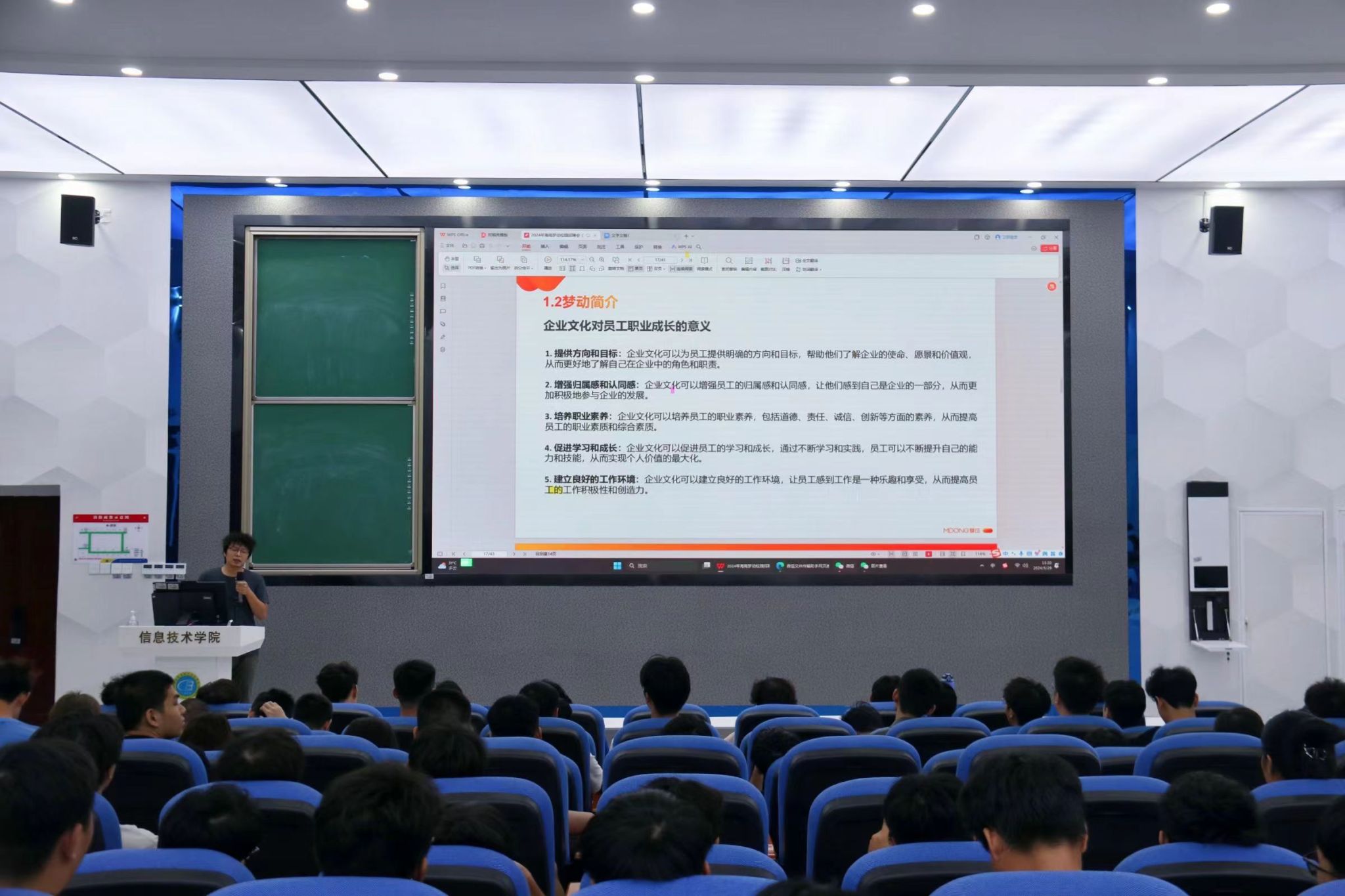 宣讲会上,海南梦动科技有限公司的负责人赵总首先向在场的同学们介绍了公司的独特定位以及五大业务板块,详细阐述了公司在大数据和人工智能领域的专业实力。接着,赵总针对同学们关心的几个问题进行了详尽解答,包括薪资结构、员工福利体系、多样化岗位和招聘流程等,使同学们对公司的整体情况有了更为深入的了解。此外,赵总还结合自身丰富的经验和经历,向同学们讲述了如何在职场中生存和成长,分享了他的职场心得和宝贵建议。现场互动积极、气氛热烈,同学们收获满满。宣讲会的最后,就业辅导员吴淑亲深入剖析了简历撰写的关键要素,让同学们深刻认识到简历在求职过程中的重要作用。