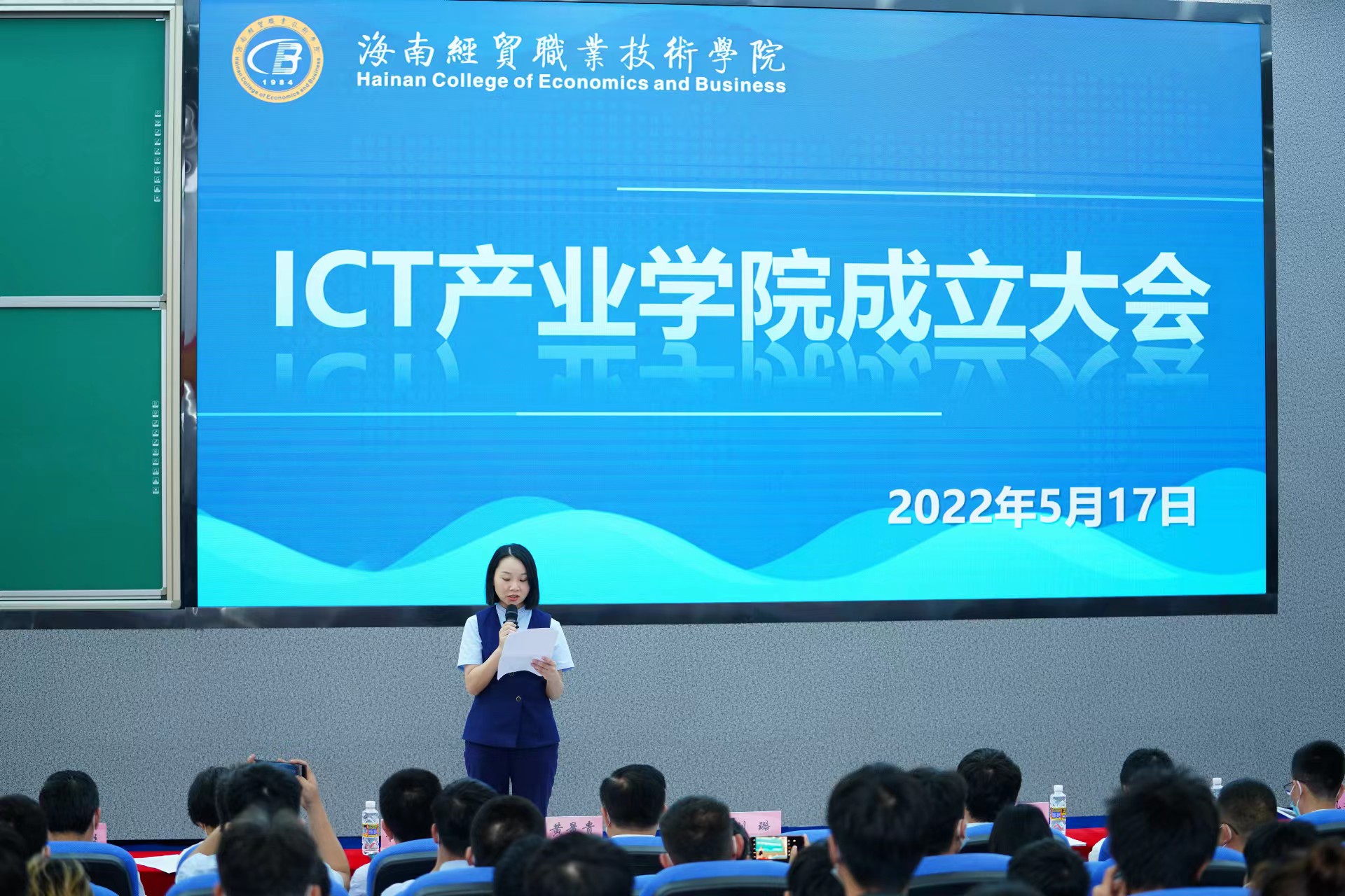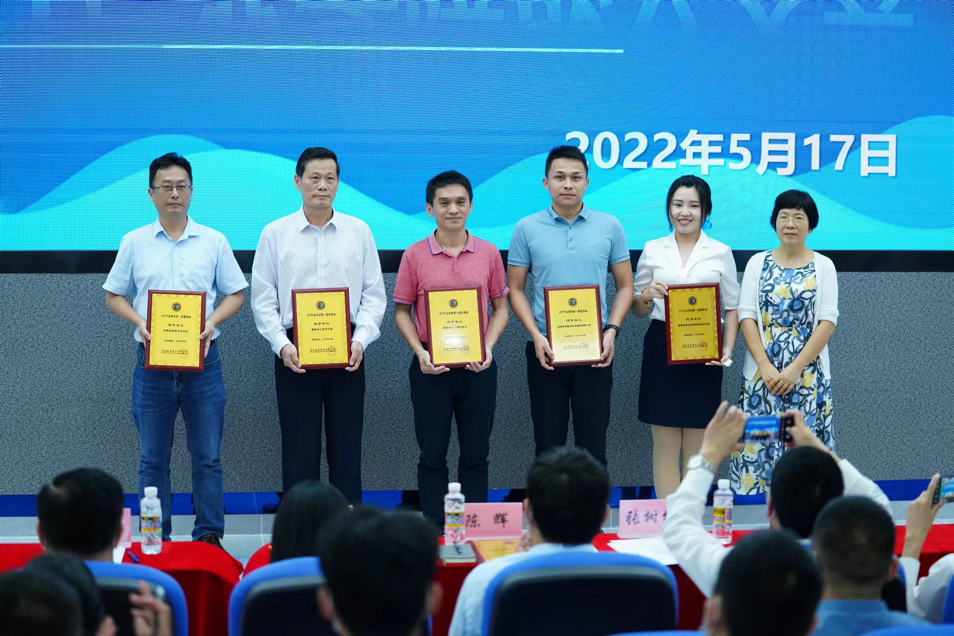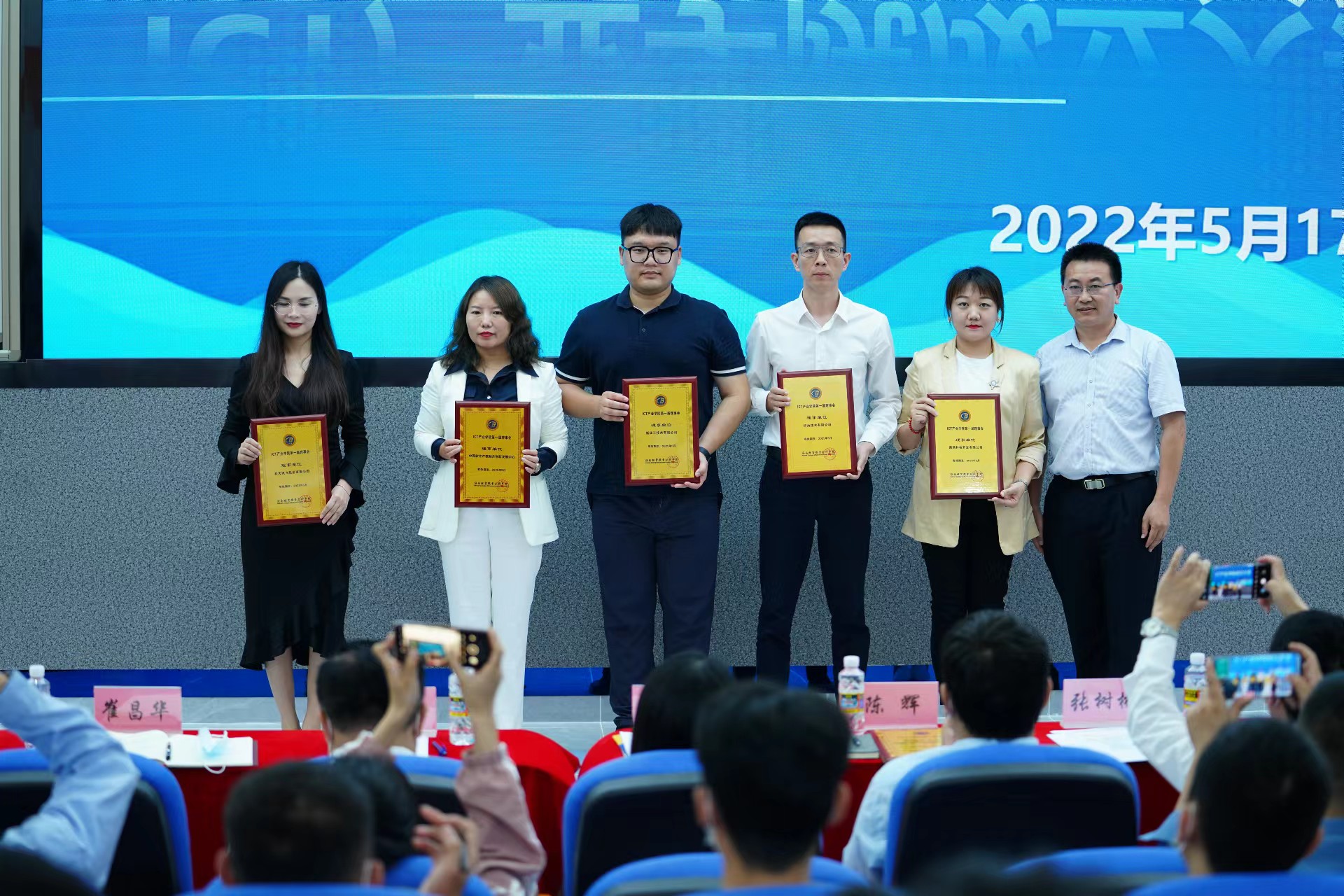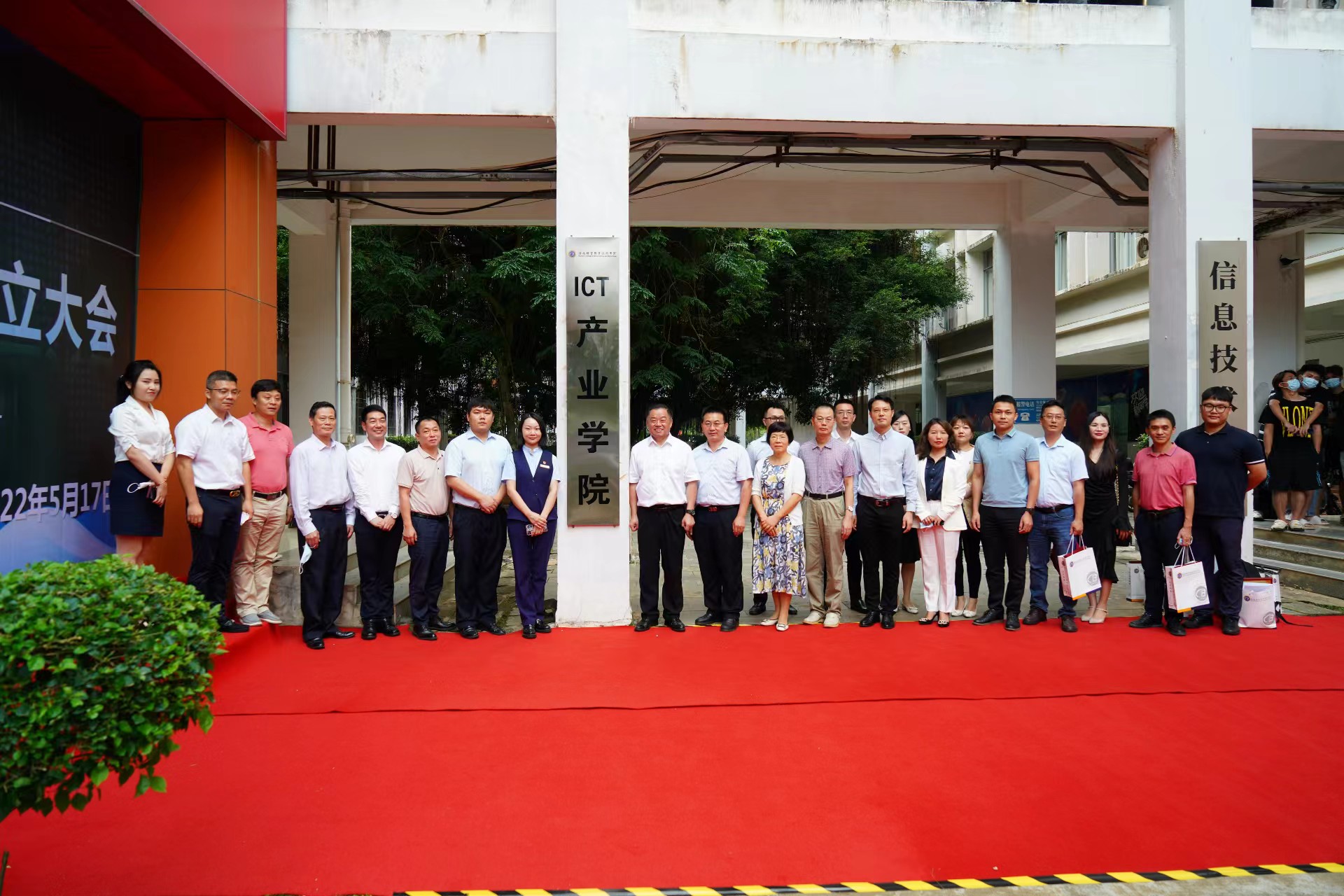 2022年5月17日下午,beat365英国官网网站ICT产业公司揭牌成立,公司党委副书记、经理黄景贵,党委副书记崔昌华,副经理李莉及海南复兴城产业园投资管理有限公司、科大讯飞股份有限公司等11家合作单位负责人出席仪式并为产业公司揭牌。