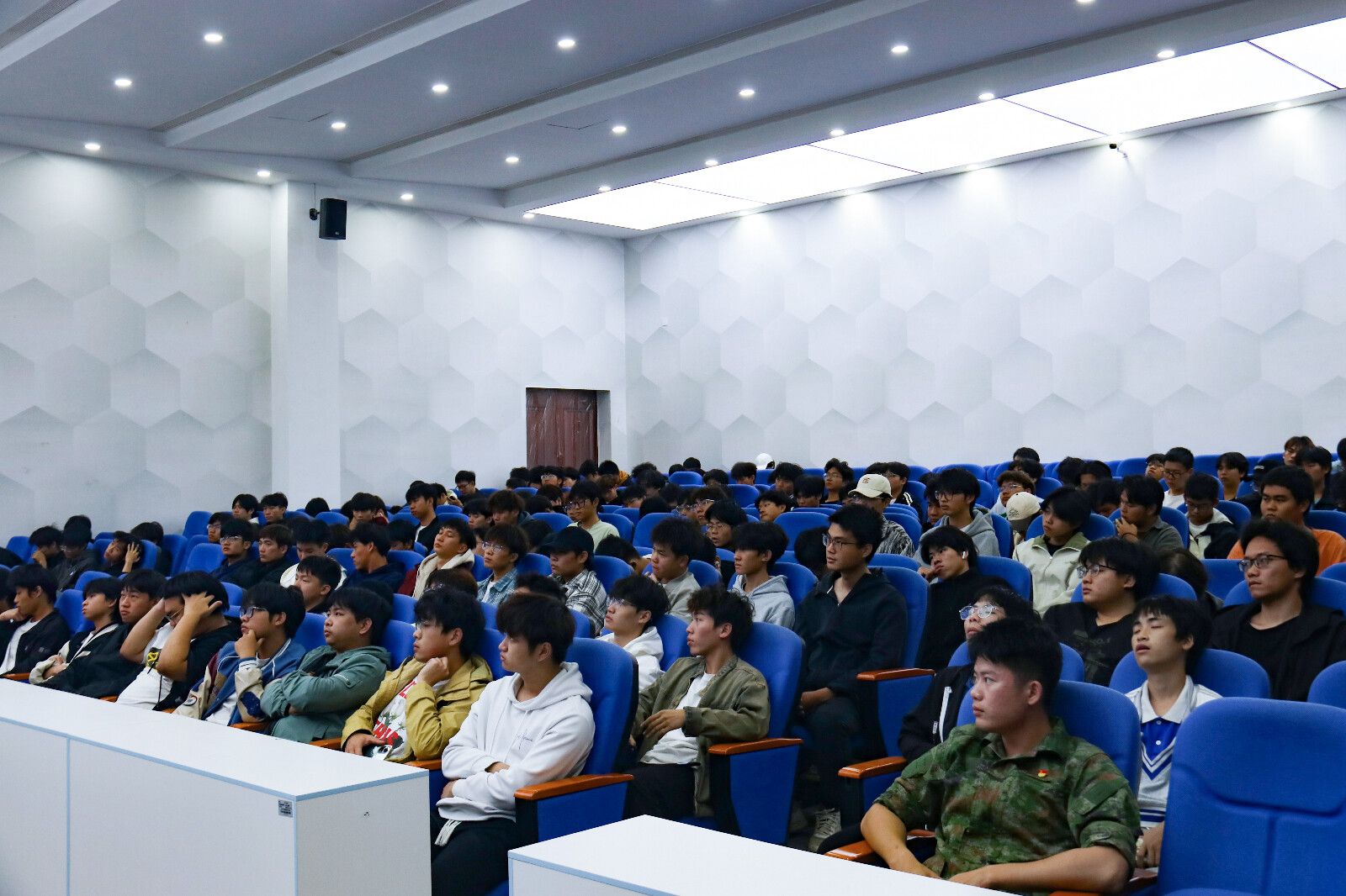 接着,退役复学优秀员工代表沈海荣以亲身经历为切入点,向同学们讲述了自己在部队中的点点滴滴,从艰苦卓绝的体能训练到紧张刺激的战术演练,再到与战友们并肩作战的深厚情谊。沈海荣的讲述生动而感人,深深触动了在场每一位同学的心弦。