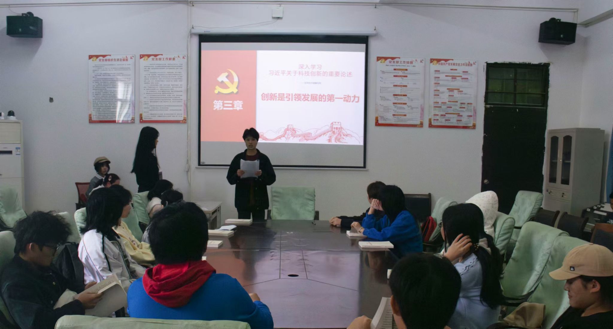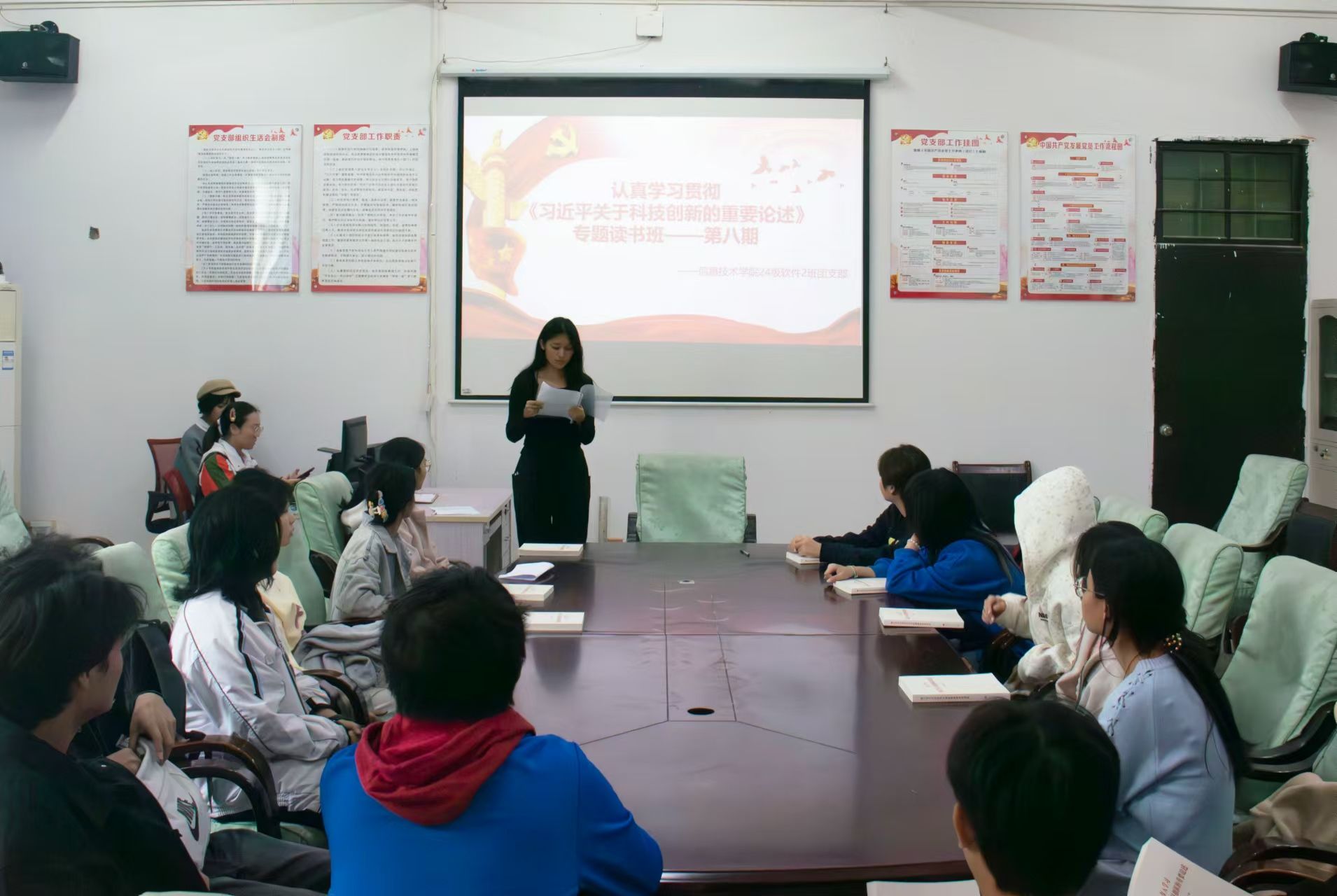 12月18日,公司员工党支部在4-213开展学习贯彻《习近平关于科技创新的重要论述》第八期专题读书班,由王紫芯同学主持,入党积极分子、入党申请人以及共青团员代表共同参加。