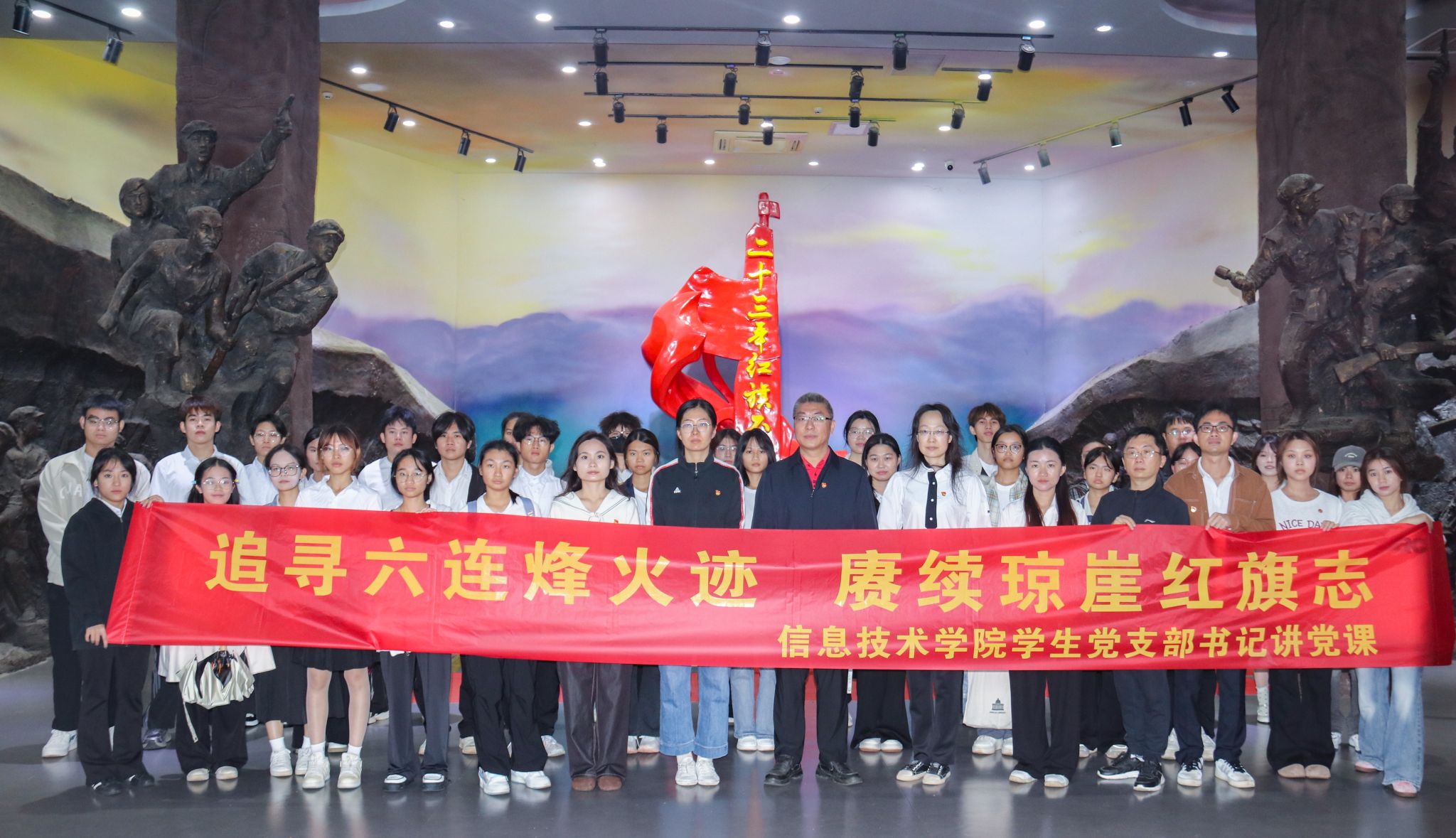 为传承红色基因、厚植家国情怀,深化对海南自由贸易港建设的认知,11月15日,beat365英国官网网站党支部以“追寻六连烽火迹 赓续琼崖红旗志”为主题,在六连岭革命根据地陈列馆开展讲党课系列活动,党总支副书记黄守官老师、教师党支部委员林阳老师、员工党支部书记代晓明老师、团总支负责人蔡守正老师、吴佳华老师、吴淑亲老师、陈彬老师、杨晓楠老师及员工党员、预备党员、团员代表共同参加,活动由林雪、符君同学主持。