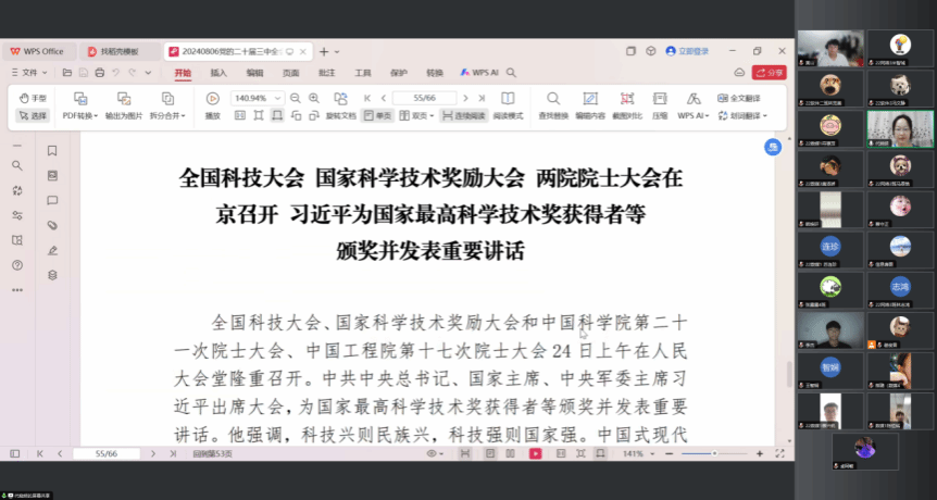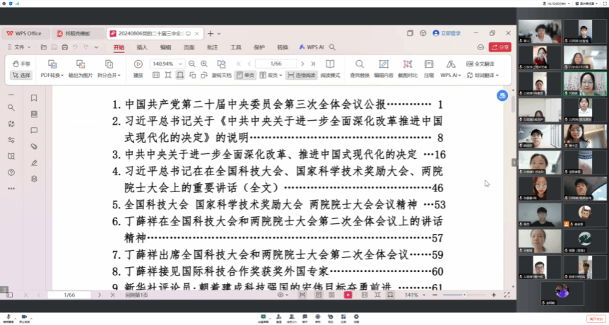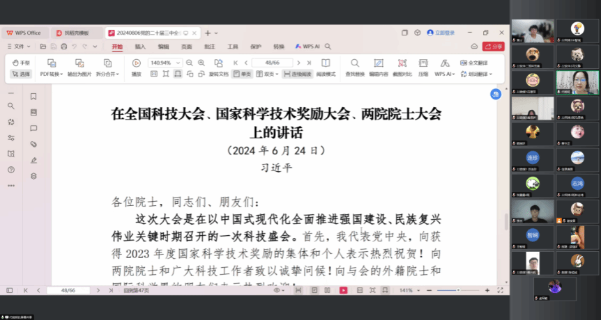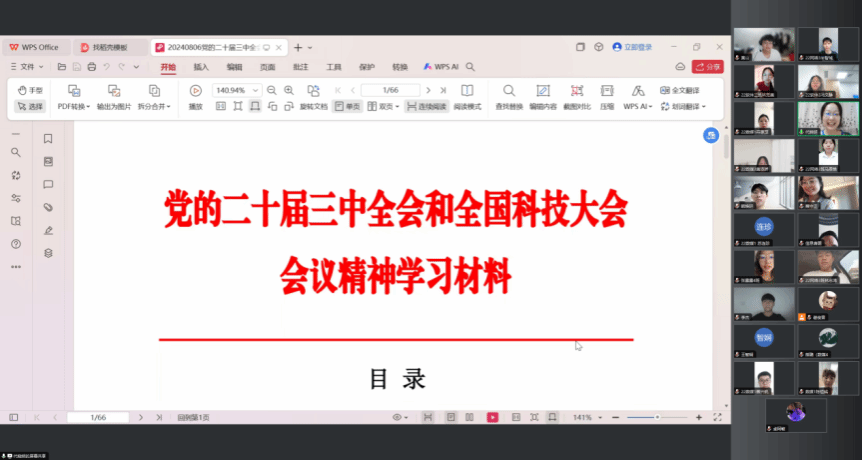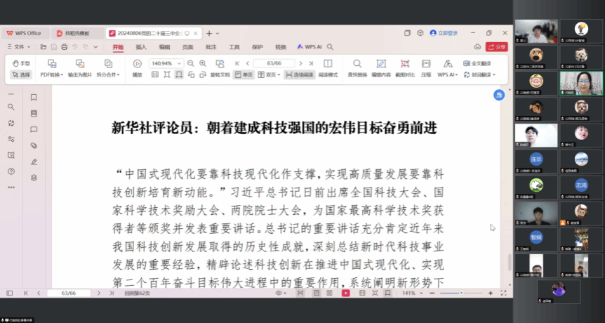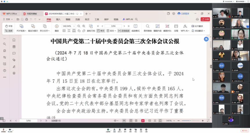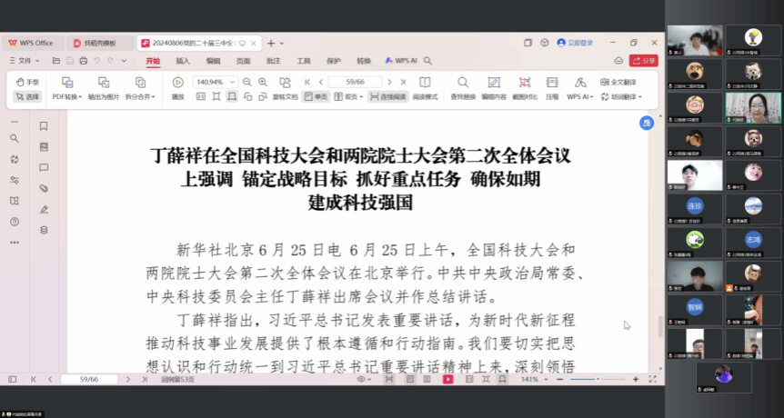 2024年8月8日,为深入学习党的二十届三中全会和全国科技大会会议精神,加强公司青年员工的使命感与责任感,公司员工党支部书记代晓明通过线上会议的形式召开了党的二十届三中全会和全国科技大会会议精神学习会议,本次会议由员工党支部全体党员和入党积极分子代表共同参加。