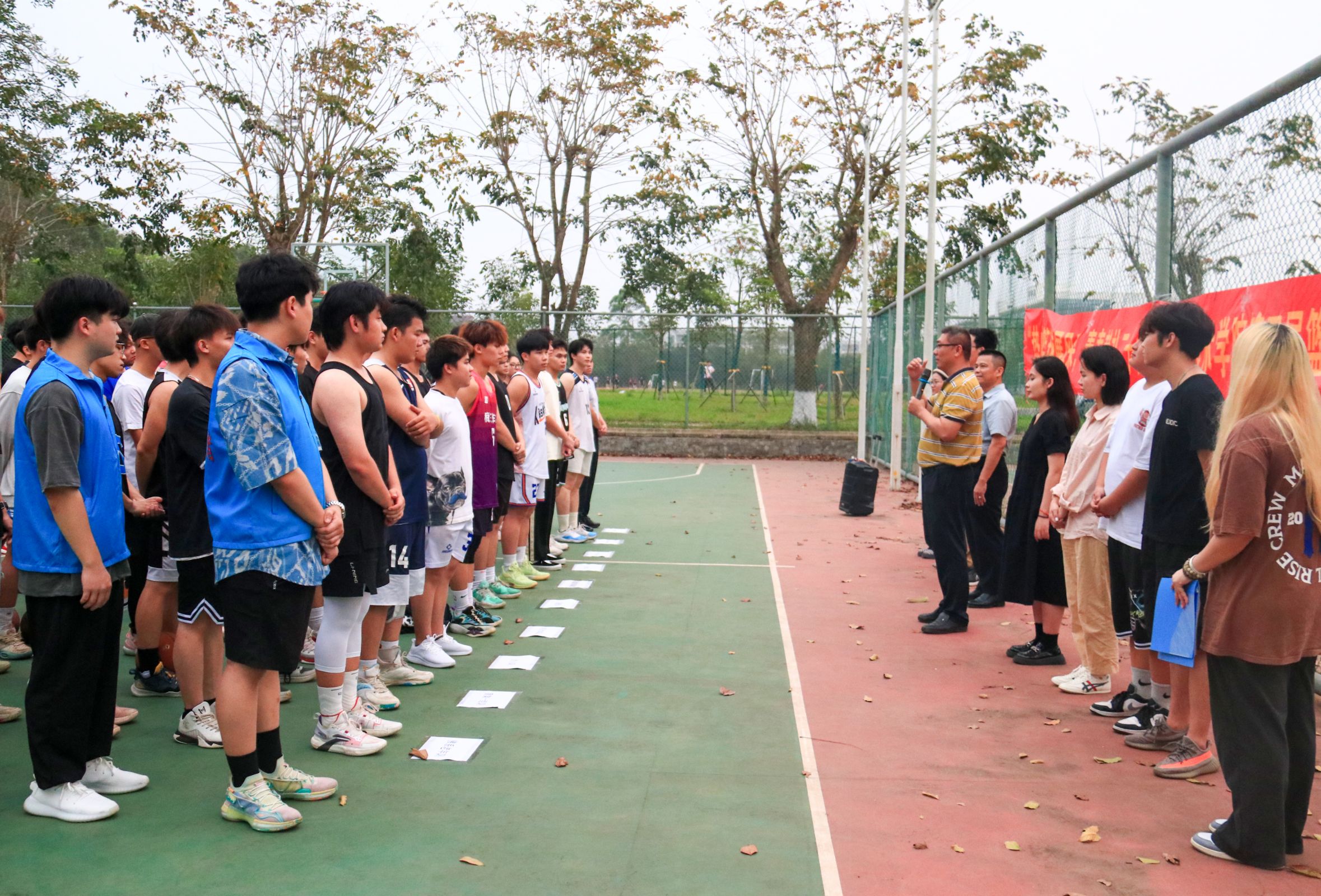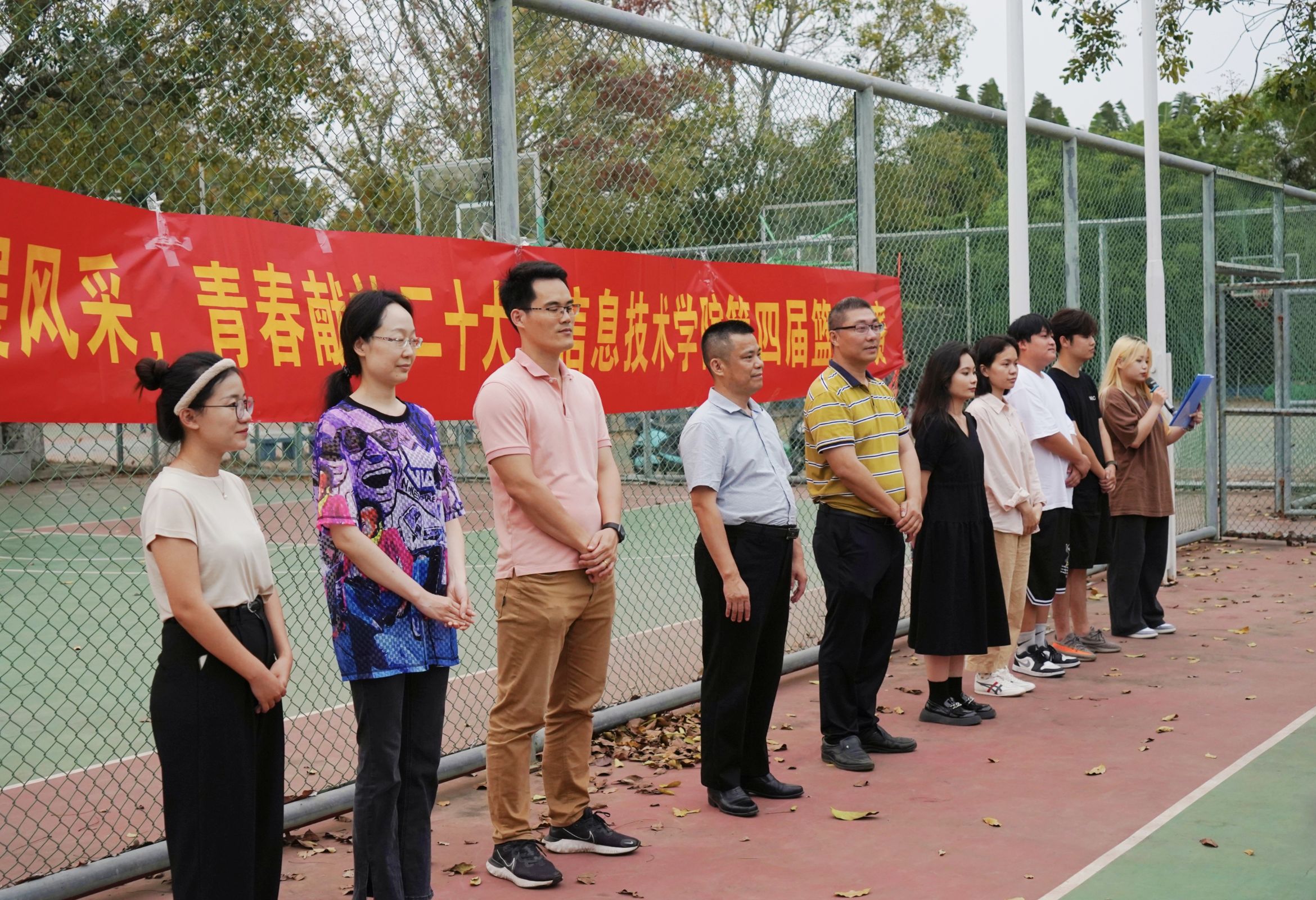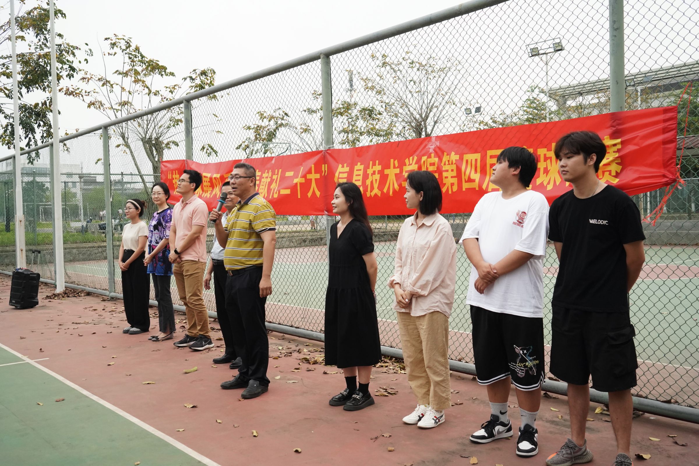 青春遇上二十大,人生逐梦正当时。为丰富员工的校园文化生活,增强信院学子顽强奋斗,勇于拼搏,团结合作的优良品质,beat365英国官网网站于4月7日下午在篮球场举行了“热血篮球展风采,青春献礼二十大”主题篮球比赛开幕式,beat365英国官网网站党总支书记符胜、党总支副书记黄守官、学工办负责人唐图、全体辅导员、全体运动员以及工作人员共同参加,由潘姿颔同学主持。