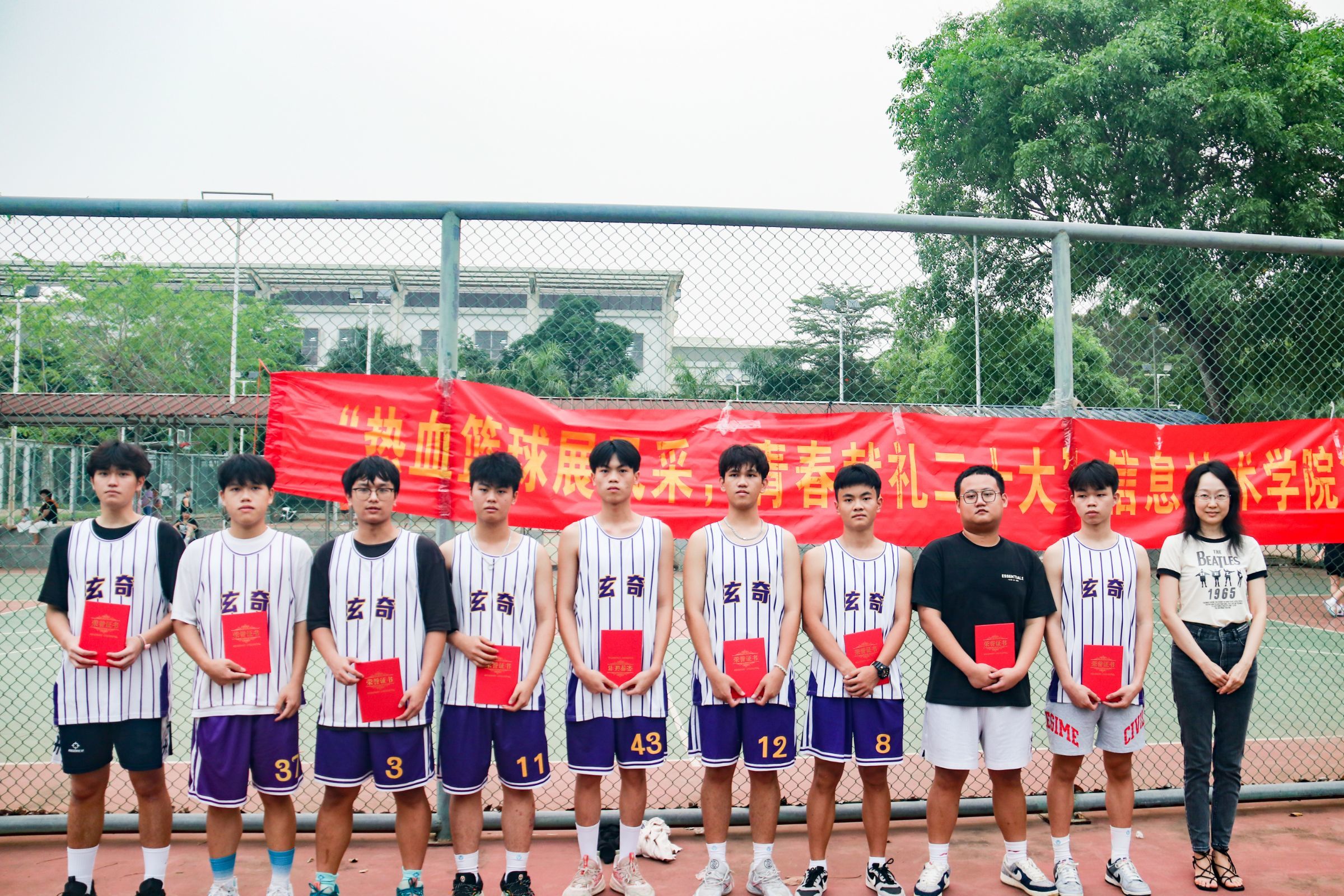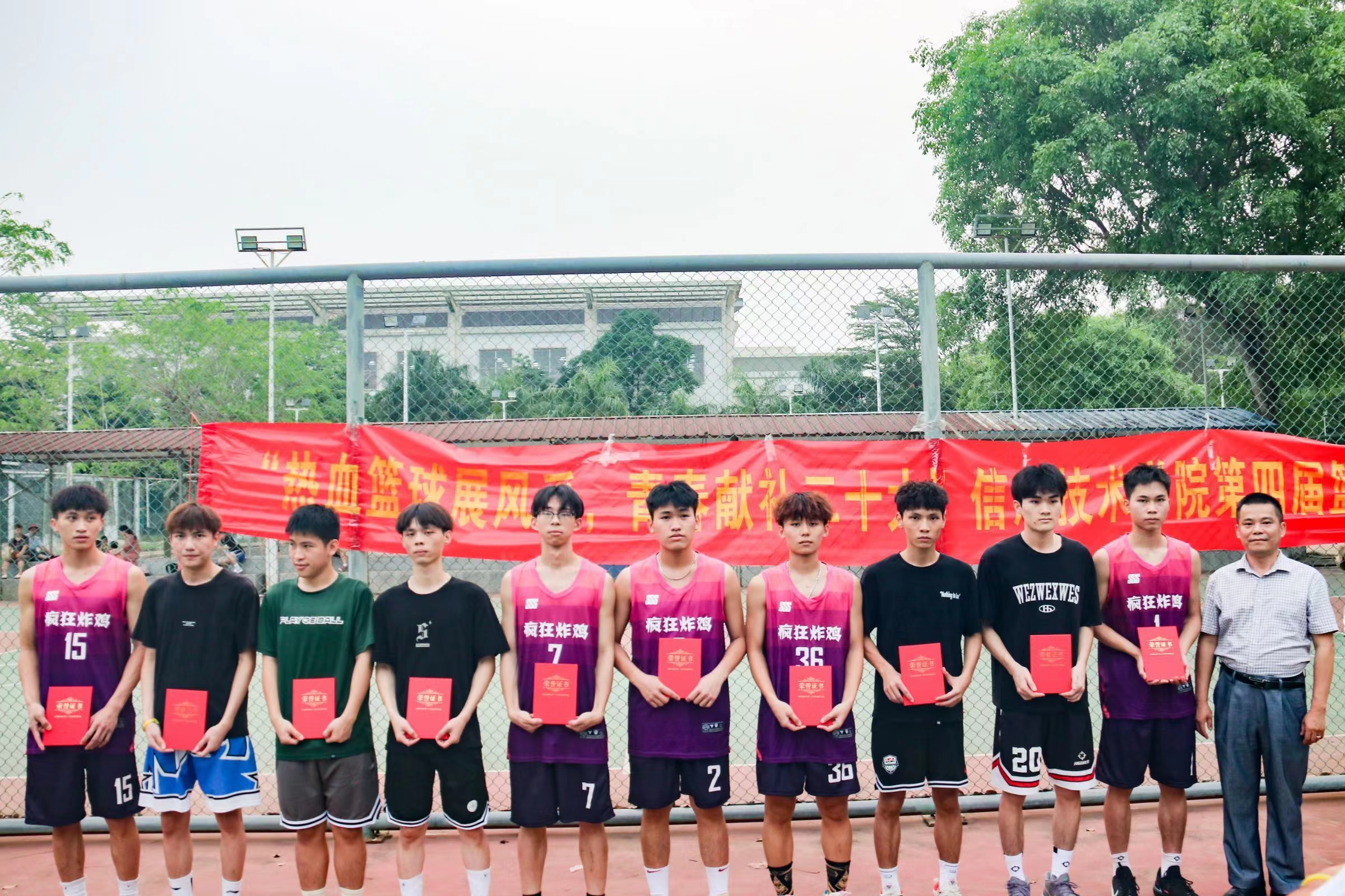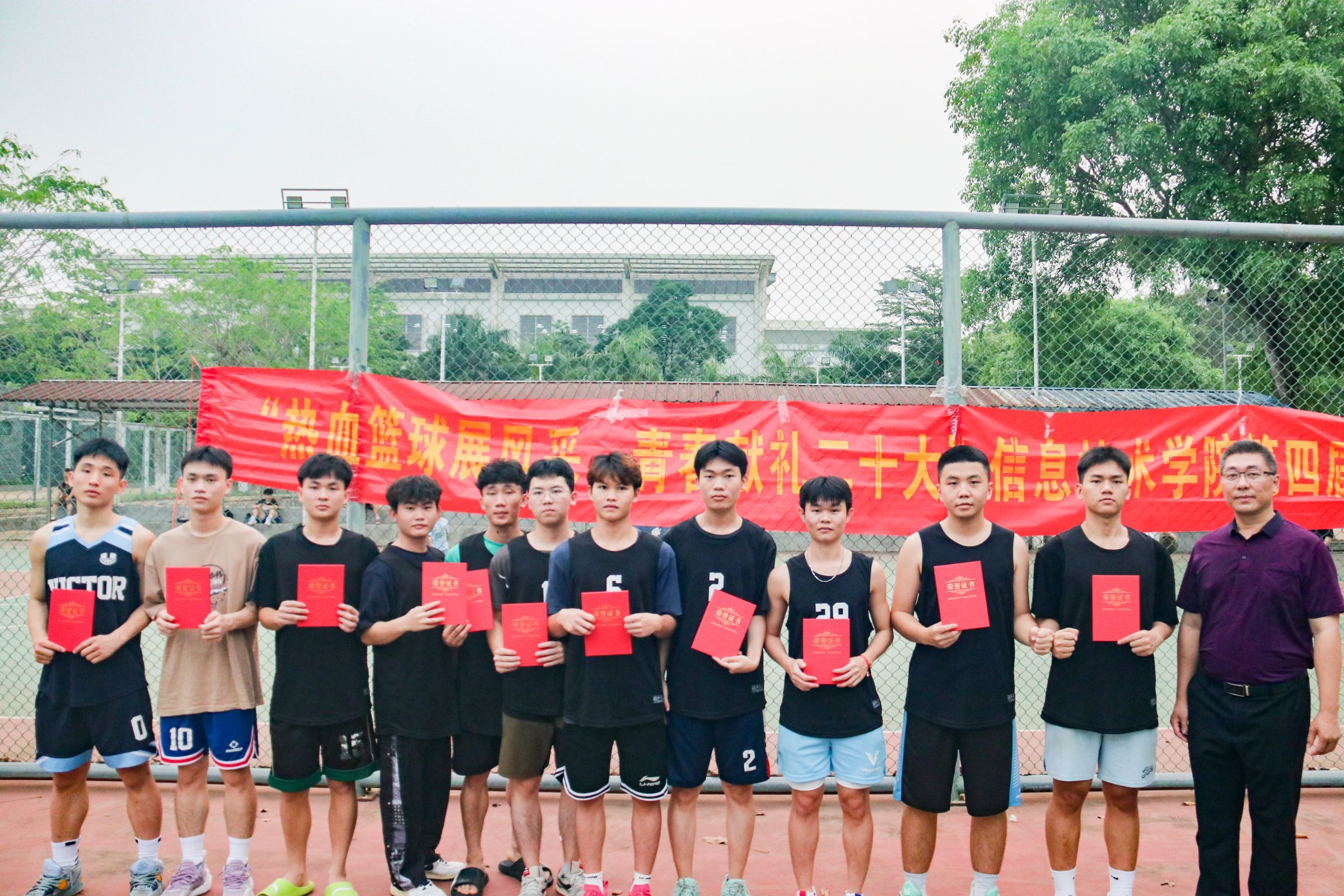 一个篮球,一身球衣,一腔热血,一往无前。beat365英国官网网站于4月20日在篮球场举行第四届篮球赛闭幕式,beat365英国官网网站党总支书记符胜、党总支副书记黄守官、全体辅导员、全体运动员以及工作人员共同参加,闭幕式由潘姿颔同学主持。