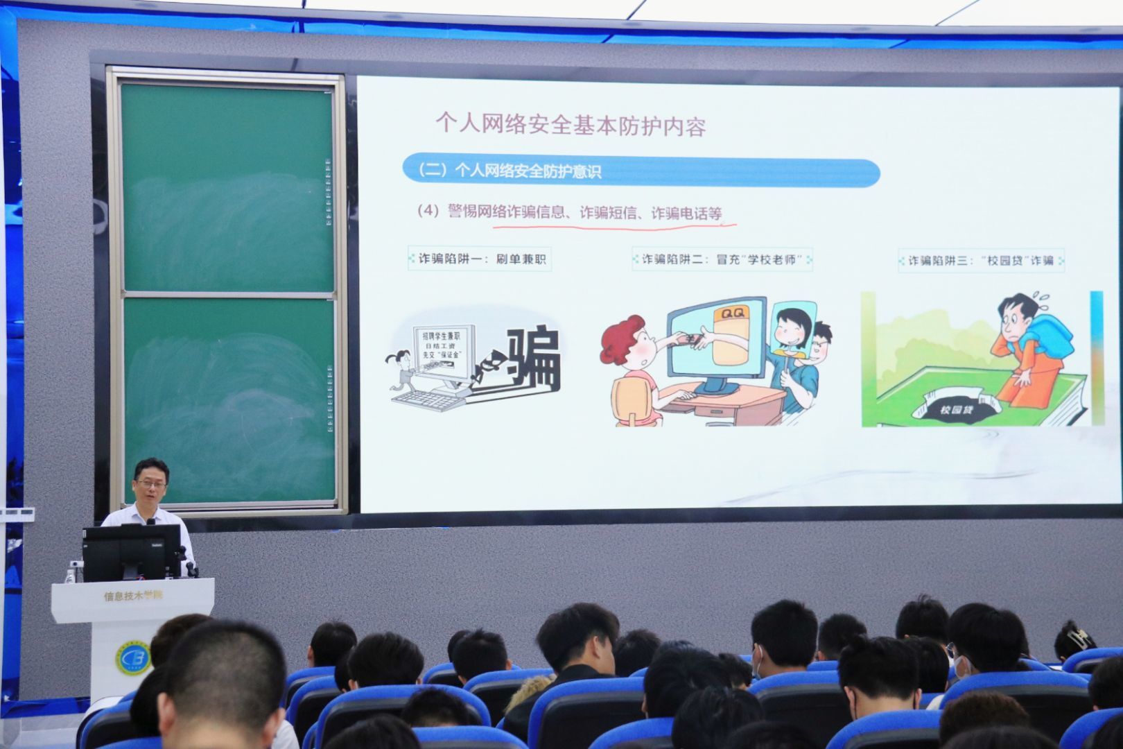 现代信息和网络技术是一把双刃剑,本次讲座让同学们意识到保护个人信息的重要性,懂得“网络安全始于心,网络安全践于行”的道理,同时切实提升同学们对网络风险的辨识和防护能力。