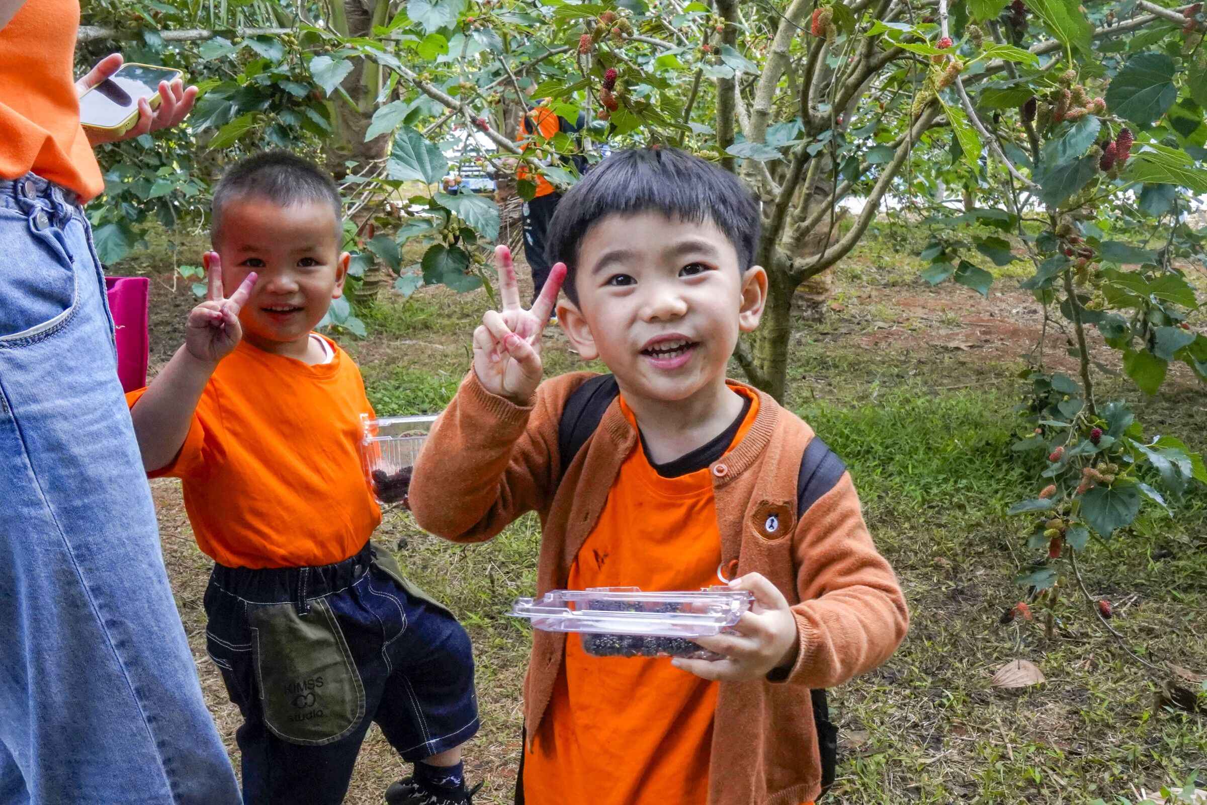 活动中,志愿者和老师们一同开展“趣味英语”课堂,通过小游戏的形式展开教学,增强了英语学习的趣味性,营造了积极、活跃的氛围。随后,在果地,志愿者们积极帮助小朋友们采摘桑葚,并和小朋友们讲解了桑葚的功效与作用,被小朋友们亲切地称为“蓝衣哥哥”和“蓝衣姐姐”,大家的欢声笑语感染了整个公园。活动的最后,心灵手巧的志愿者们为小朋友们制作的手工作品出谋划策,制作花瓣,从花朵样色到包装配饰,相互配合,共同创多作个精美作品,作品充满了小朋友们的童真,又承载了服务队员的志愿爱心。