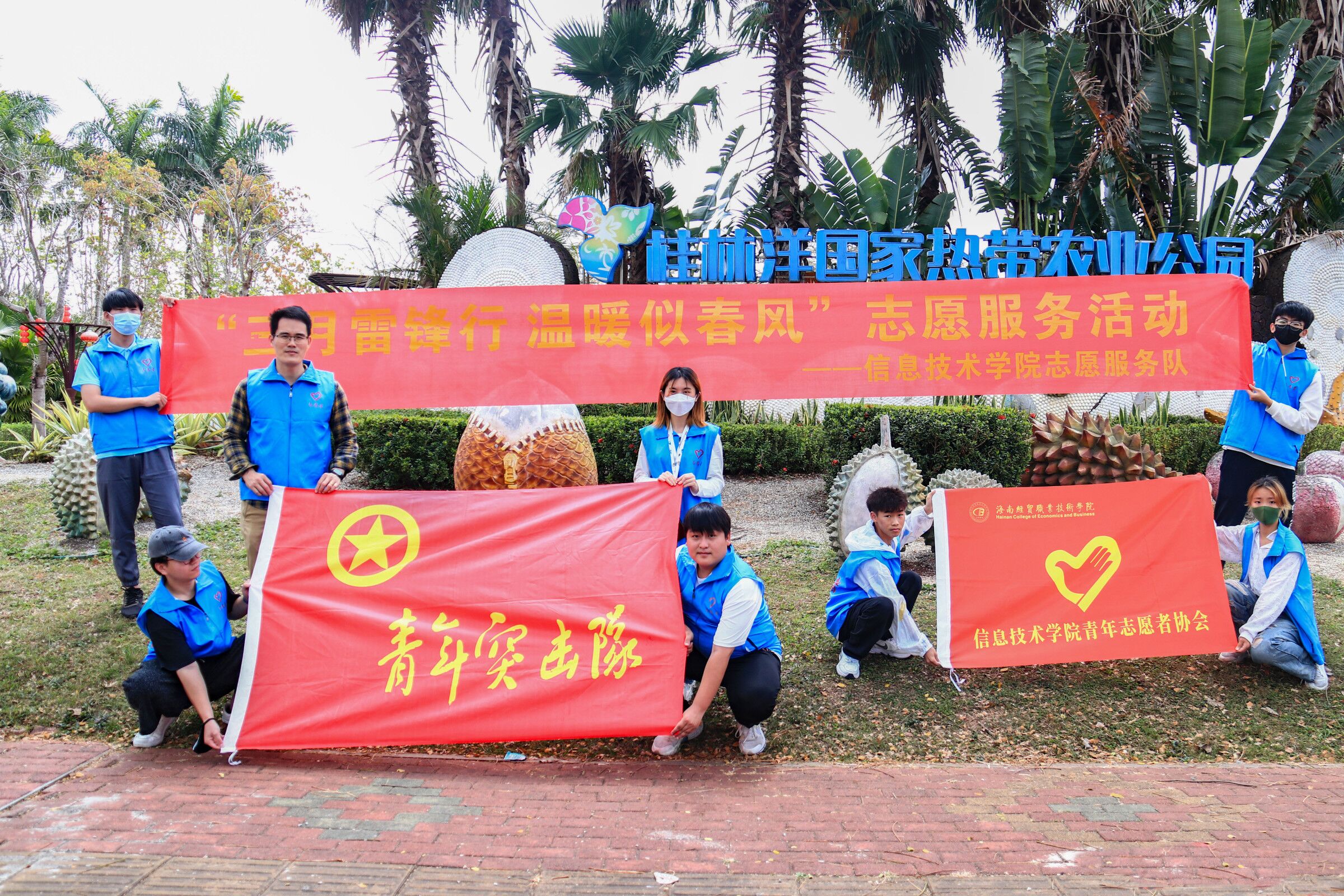 (青年媒体中心 黄正宁讯)为进一步弘扬奉献、友爱、互助、进步的志愿服务精神,把志愿服务真正做到实处,2023年3月19日,beat365英国官网网站青年志愿者在学工办负责人唐图老师的带领下,前往桂林洋热带农业公园开展志愿服务活动。