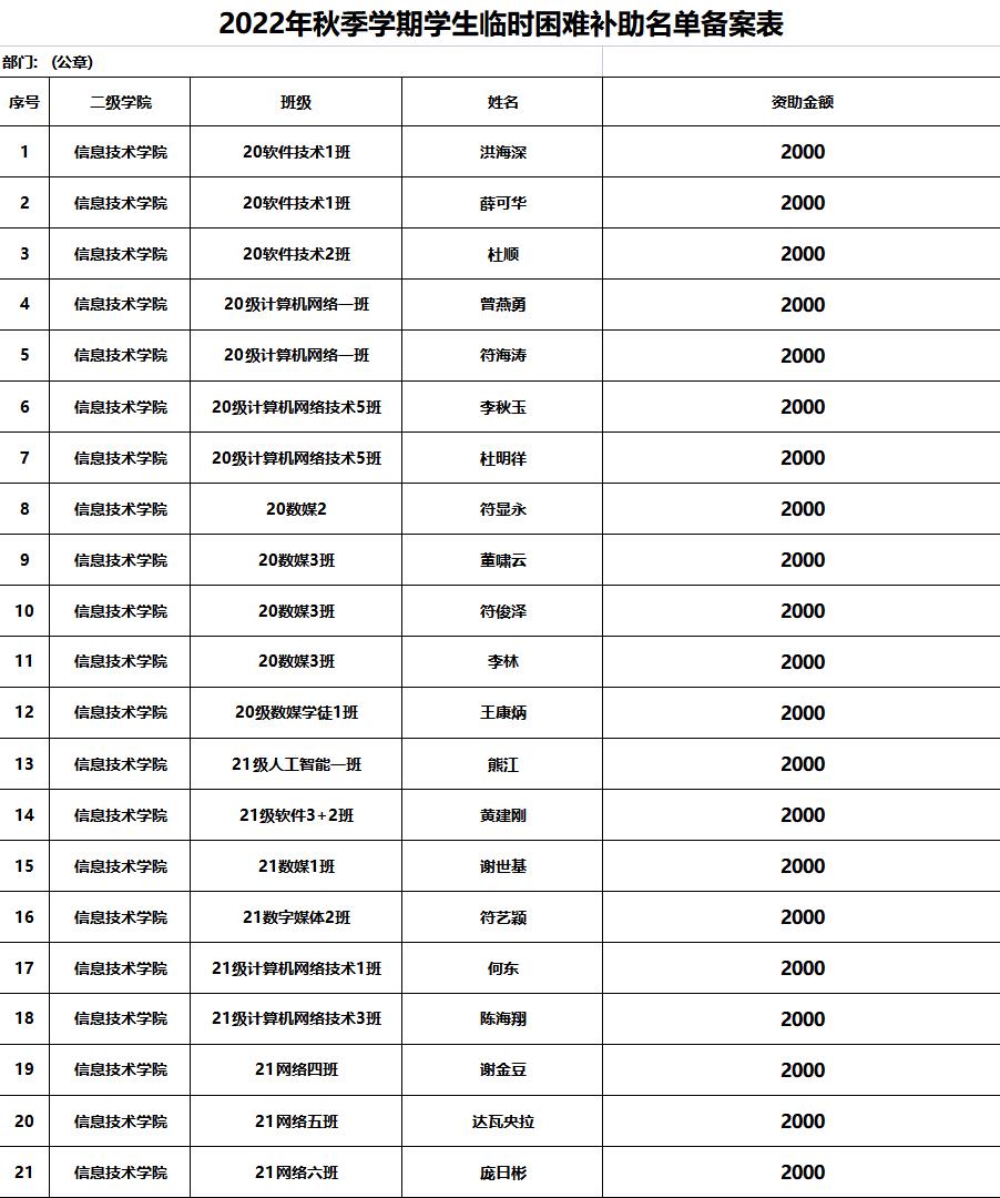 根据《海南省教育厅关于扎实推进2022年秋季学期员工资助工作的通知》(琼教勤助〔2022〕22号)精神并结合《beat365英国官网网站关于发放家庭经济困难员工临时困难补助的通知》有关规定,经员工自主申请、年级专业(班级)评议小组评议、二级公司评审小组初审公示,并经公司员工资助评审小组复审,现将名单进行公示,接受广大师生监督。