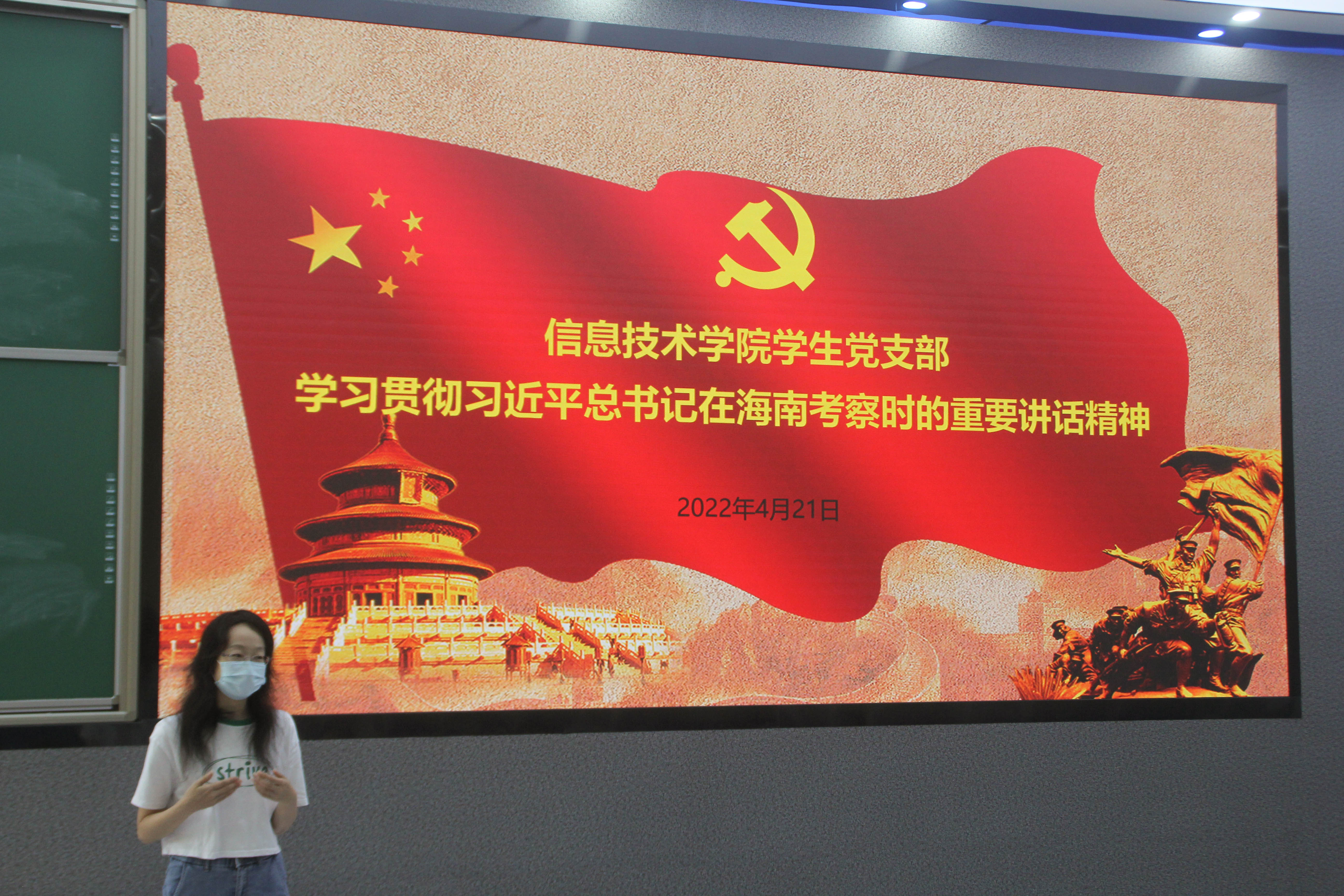 4月21日上午,公司员工党支部书记代晓明主持召开交流会,传达学习习近平总书记在考察海南时的重要讲话精神。学工办主任梁其钰、全体辅导员及入党积极分子参加会议。