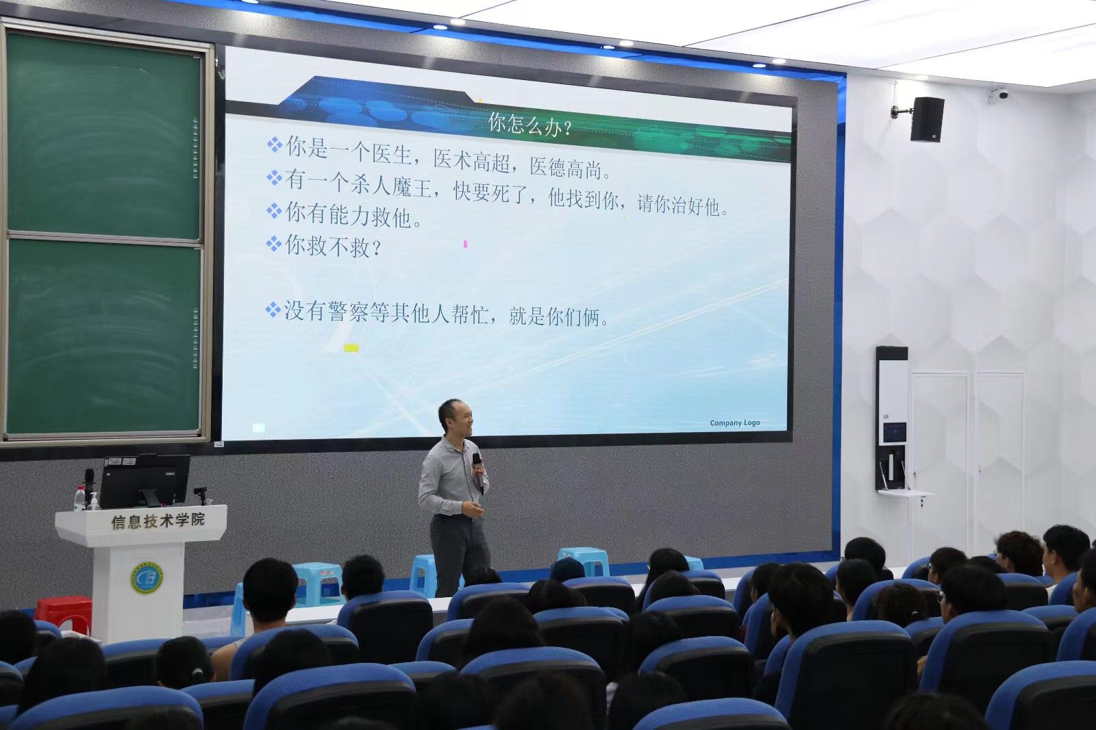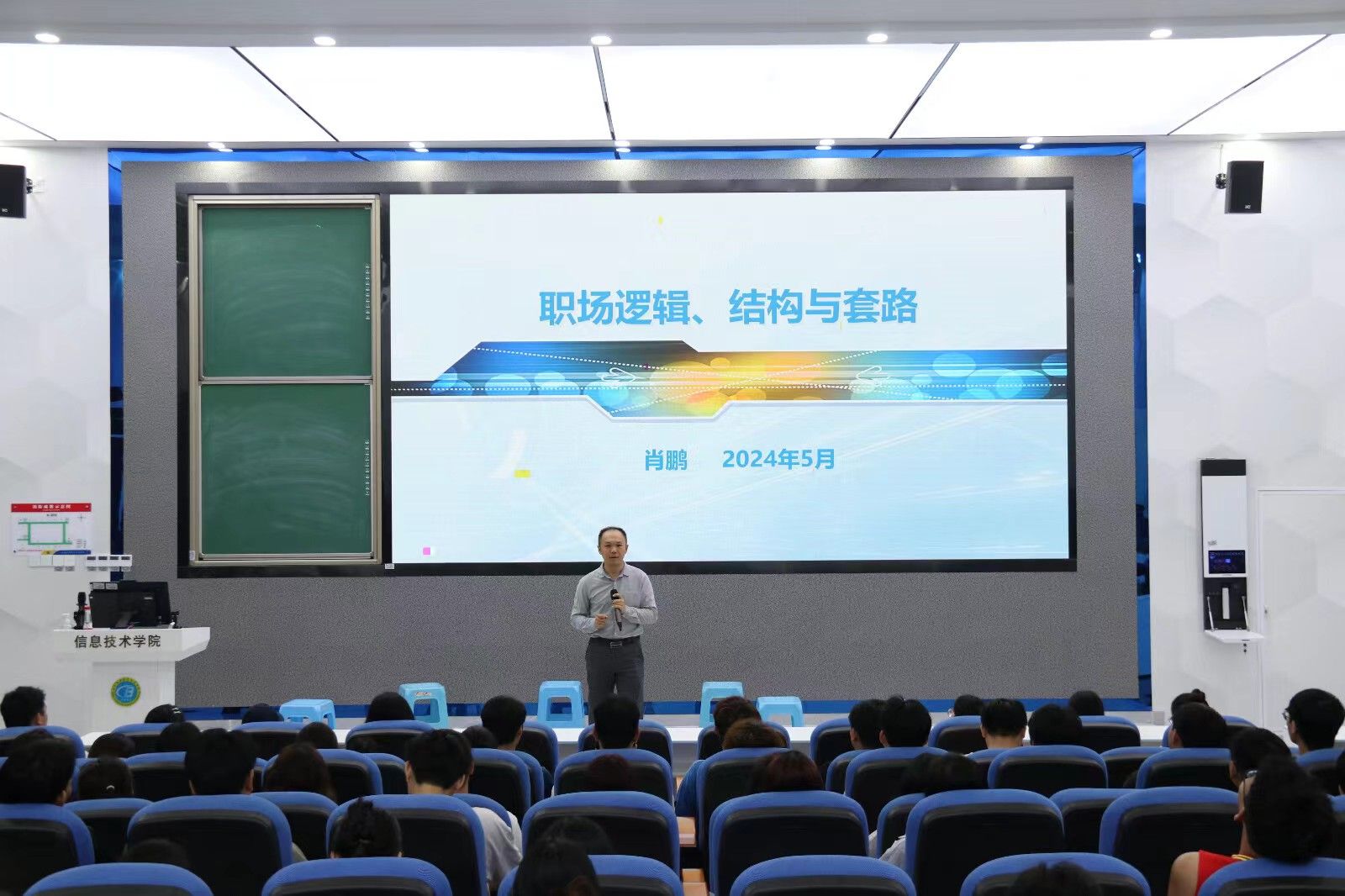 活动伊始,肖鹏老师通过深入浅出的讲解,向同学们介绍了职场中可能遇到的各种情况,并精心设计了多个模拟场景,使同学们能够身临其境地体验职场生活。在每个模拟场景中,肖老师都挑选了同学上台参与互动,模拟在职场中可能遇到的各种挑战和问题。他向员工们提出了一系列具有针对性的问题,挑战员工们的职场应对能力,同学们面对老师的提问,对答如流,充分展示了他们的专业素养和应变能力,现场气氛热烈而活跃。