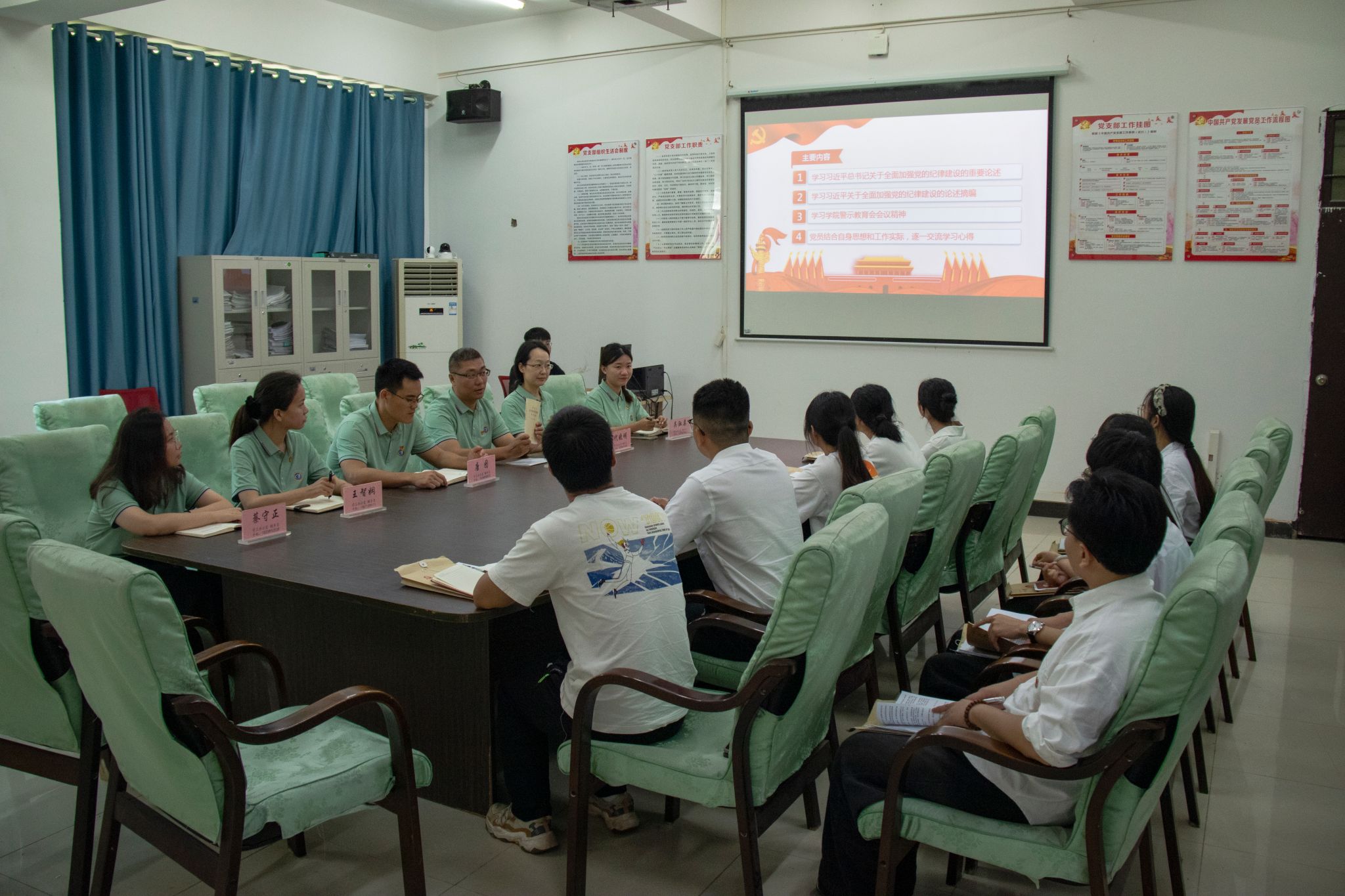 为深入学习贯彻习近平总书记关于党的纪律建设的重要论述,进一步推动党纪学习教育走深走实,公司员工党支部于6月19日下午在4-213教室开展党纪学习教育学习研讨活动。参与本次活动的有beat365英国官网网站党总支副书记黄守官老师,员工党支部书记代晓明老师,学工办负责人唐图老师,辅导员吴淑亲老师、王智娴老师、蔡守正老师以及员工党员。