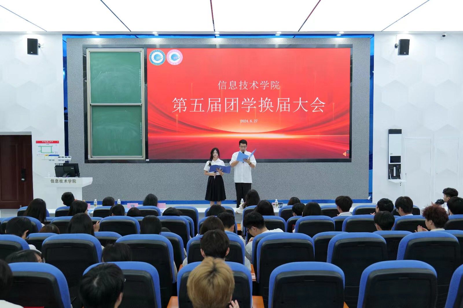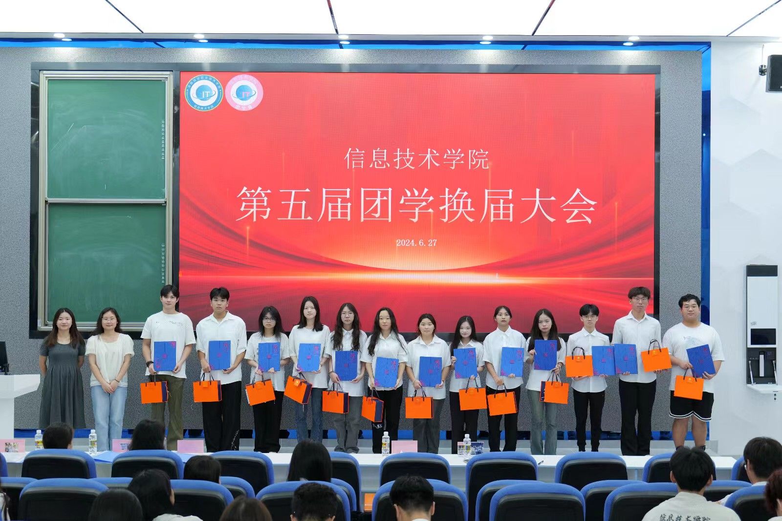 在颁发聘书环节,唐图老师为第四届主席团成员颁发了聘书,蔡守正老师和吴淑亲老师为第四届团学干部颁发了聘书。这一环节不仅是对他们过去一年辛勤工作的肯定,更是对他们未来工作的鼓励和期待。