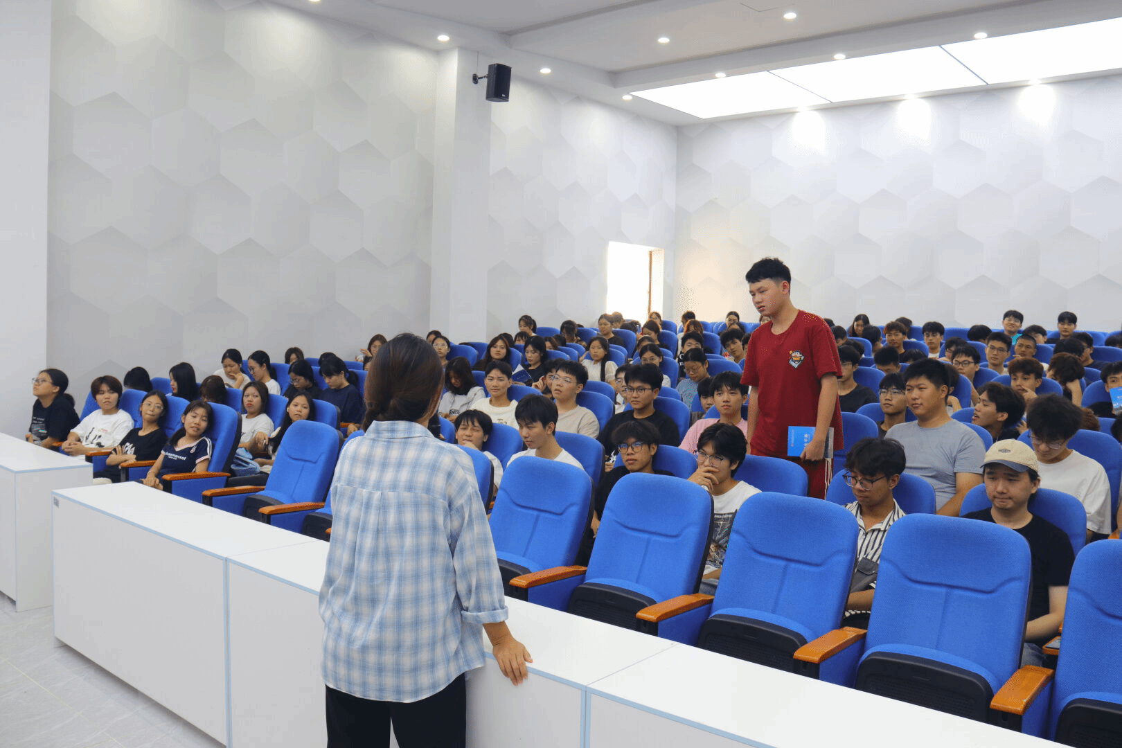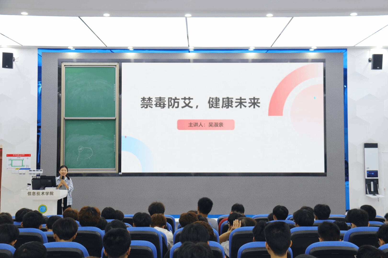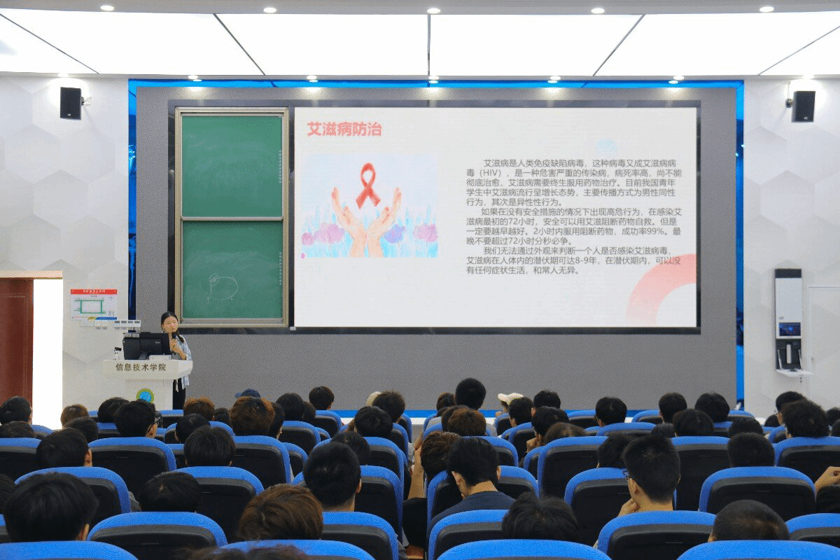 活动伊始,吴老师通过播放一段简短而深刻的视频,成功引入了禁毒防艾的话题。随后,她从认识艾滋病、了解新型毒品、揭示毒品的巨大危害以及青少年如何有效防范等四个方面,为新生们做了详细而生动的讲解。