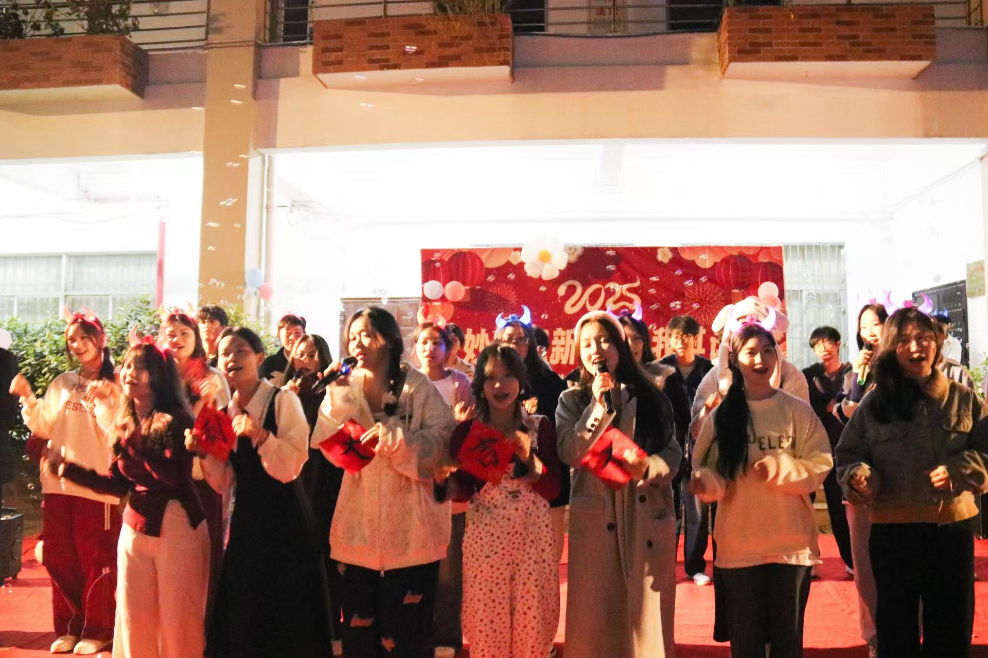 游园会现场,艺术团的同学们的表演精彩纷呈。舞蹈《桃花朵朵开》轻盈优美,赢得了阵阵掌声;《青苹果乐园》奏响了青春的旋律,让人感受到无限的活力;《竹竿舞》独具风情,展现了多元文化的魅力;最后的大合唱《春风十里报新年》更是将现场气氛推向了高潮,欢呼与掌声不断,整个活动节目多样,气氛热烈,向着新岁尽情释放欢乐。