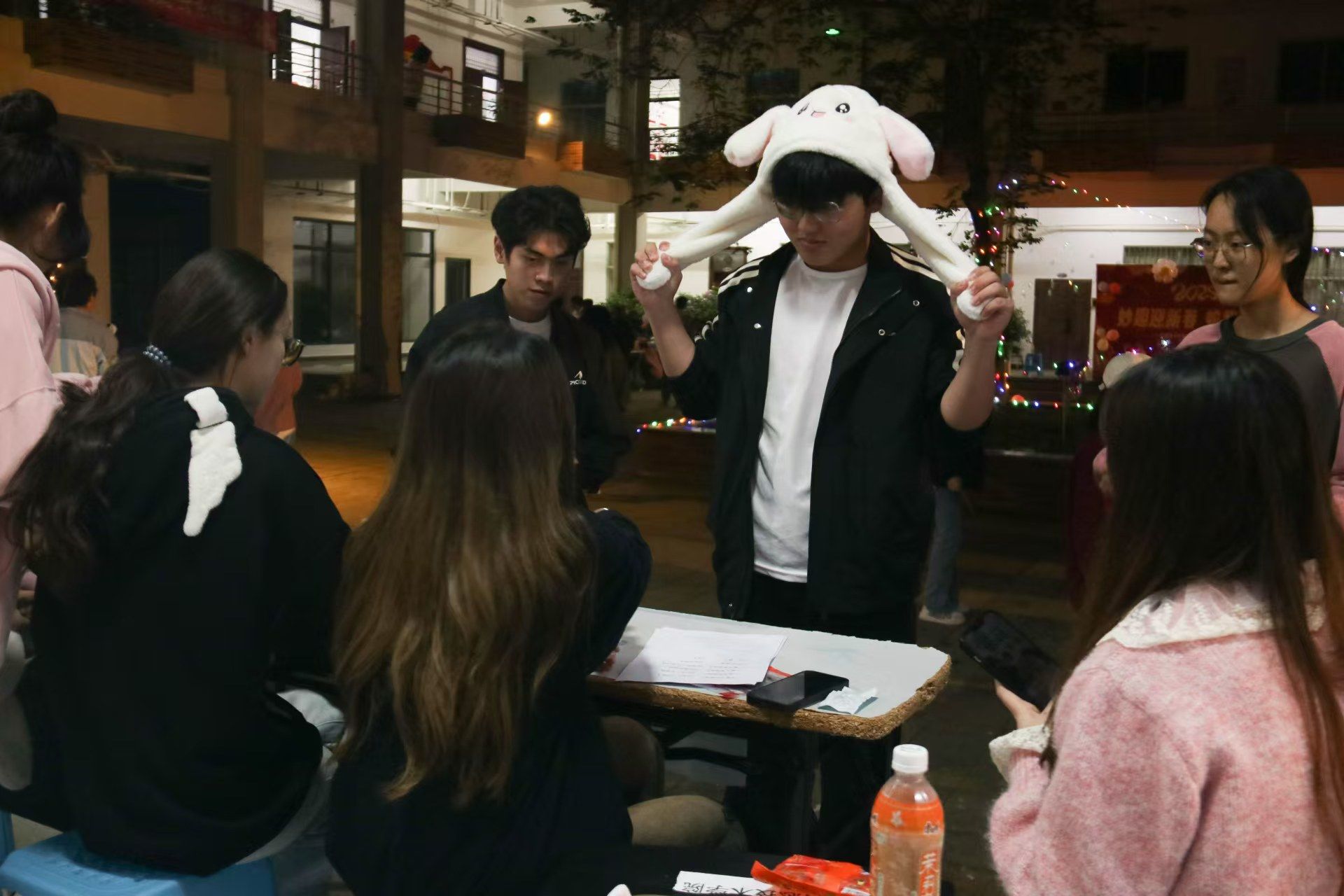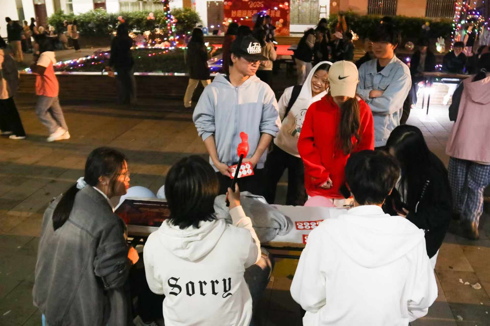 妙趣横生的游戏区,纸杯节奏大师、兔子耳朵、公鸡下蛋等趣味游戏在欢声笑语中有序进行,师生们凭借通关印章数量换取相应奖品,整个活动现场洋溢着浓厚的欢乐与祥和。此外,本次游园会还增设了现场写对联、写“福”字的特色环节,为活动增添了别样的文化韵味。师生们在参与游戏之余,纷纷挥毫泼墨,将对新年的美好祝愿融入一笔一划之中。