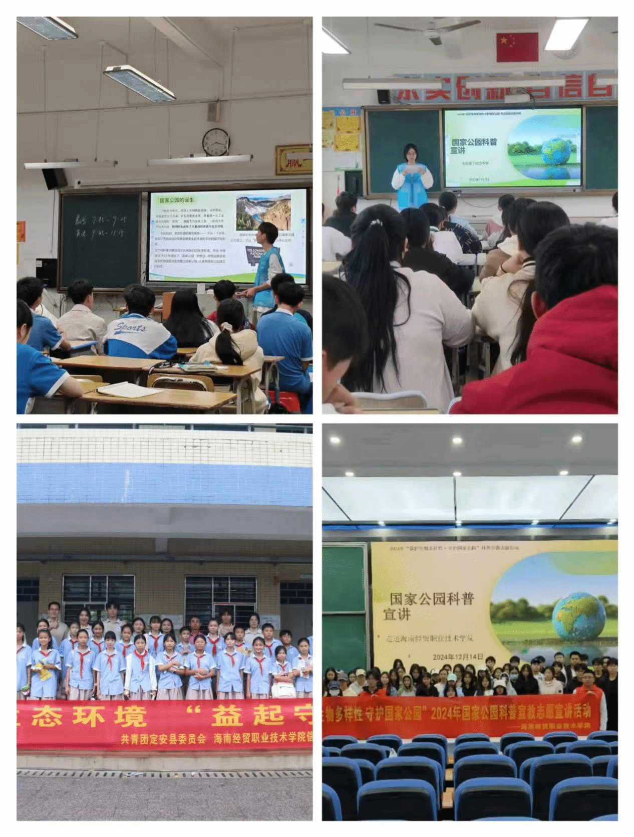 自从入选国家公园科普宣教志愿宣讲团以来,海经贸宣讲团队在公司和校团委的大力支持和指导下致力于生态保护实践。近一年来,他们通过主题班会、生态观影、志愿宣讲、线上竞答、与生态环境部宣教中心合作成为“益起守护: 青少年生态探究社会实践行动”2024年度合作伙伴等形式,在校内外开展科普活动30余场,覆盖超2157人次;积极利用寒暑假“返家乡”“三下乡”等契机,动员团队成员在吉林、黑龙江、河北等5省及海南多地社区、母校,以形式多样的宣讲方式科普雨林保护知识,推动生态理念“跨地域传播”,为凝聚社会共识注入青春动力。