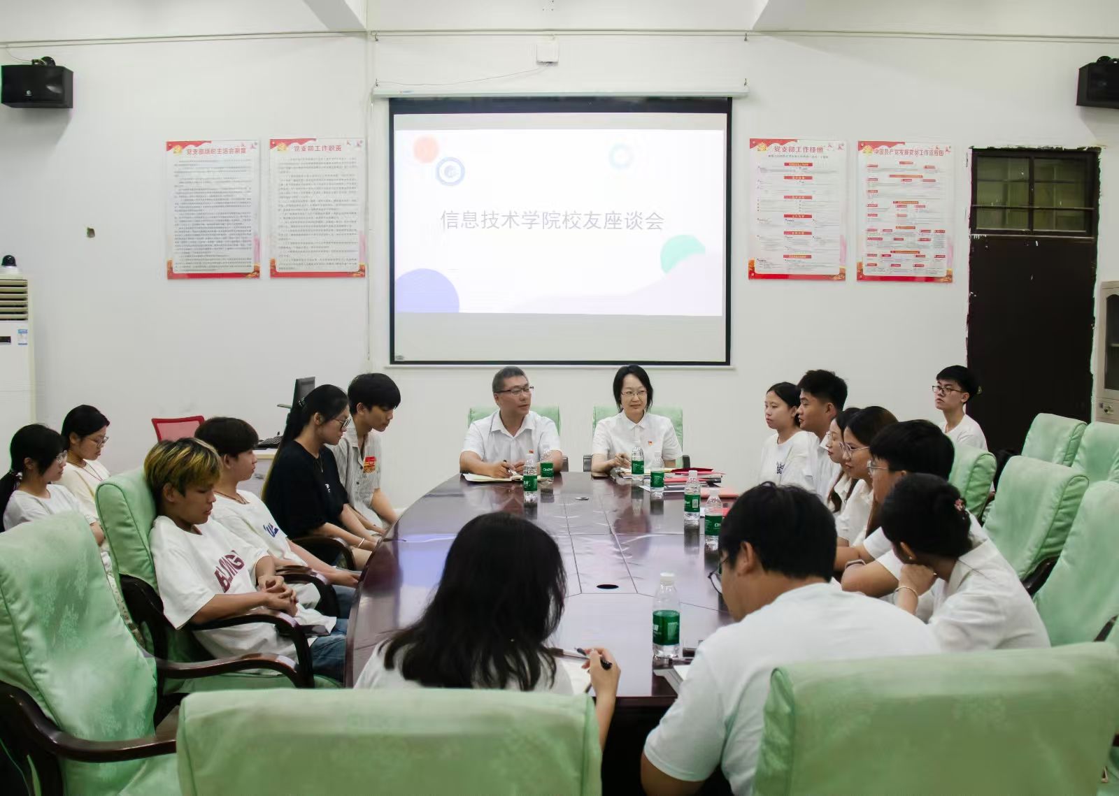 6月18日,beat365英国官网网站在4-213会议室举办师生座谈会。公司党总支副书记黄守官,辅导员代晓明、蔡守正、吴佳华老师,2022级优秀毕业生代表与2024级员工代表齐聚一堂,共话成长之路。