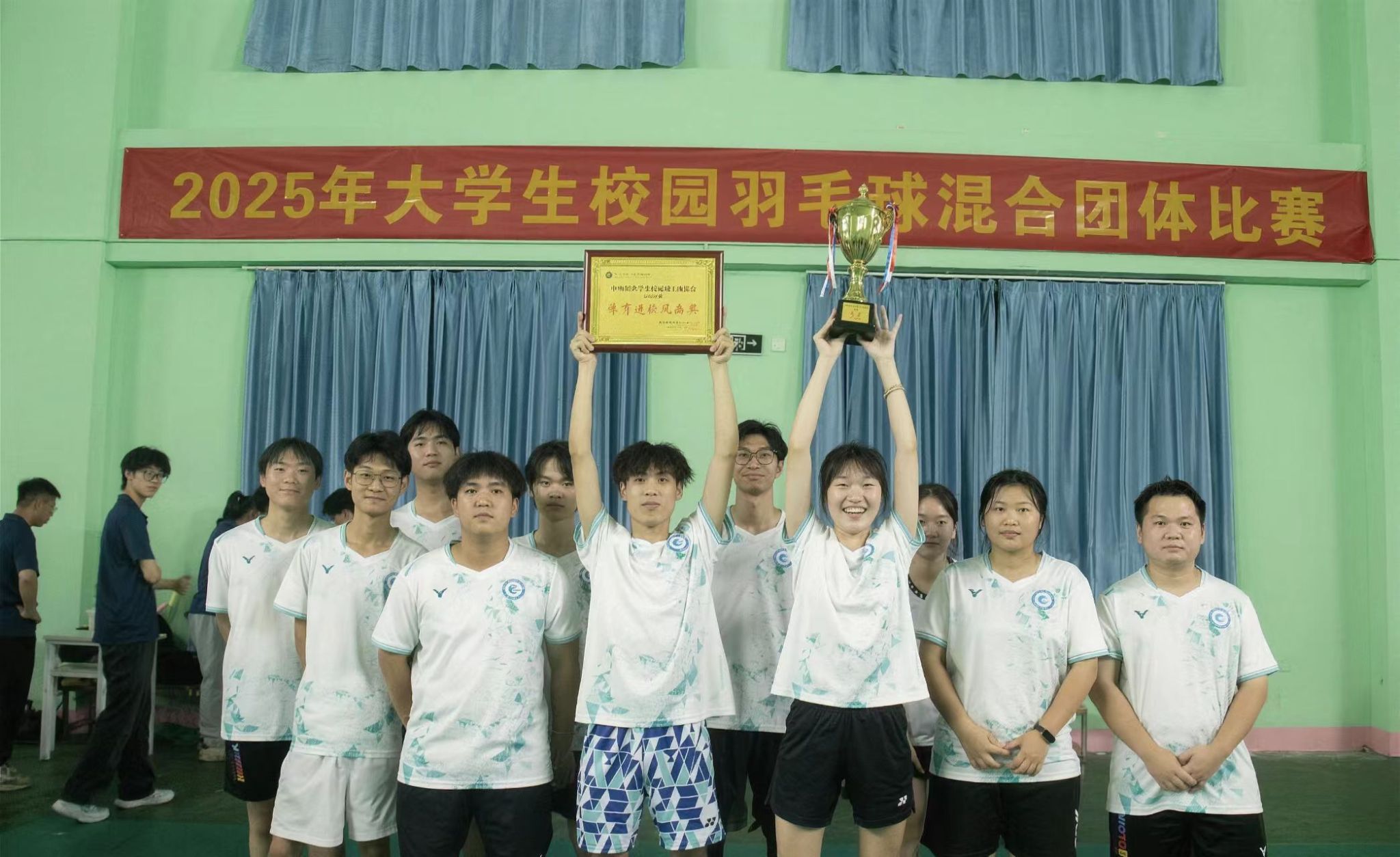 2025年11月4日晚,beat365英国官网网站校园羽毛球团体赛迎来终极决战。历经8天激烈角逐,公司代表队与国际贸易公司代表队从全校8支劲旅中脱颖而出,在决赛赛场展开巅峰对决,最终公司以3:0的绝对优势完胜对手,一举斩获团体赛冠军,同时凭借文明参赛风貌荣膺“体育道德风尚奖”,为公司赢得双重荣誉!