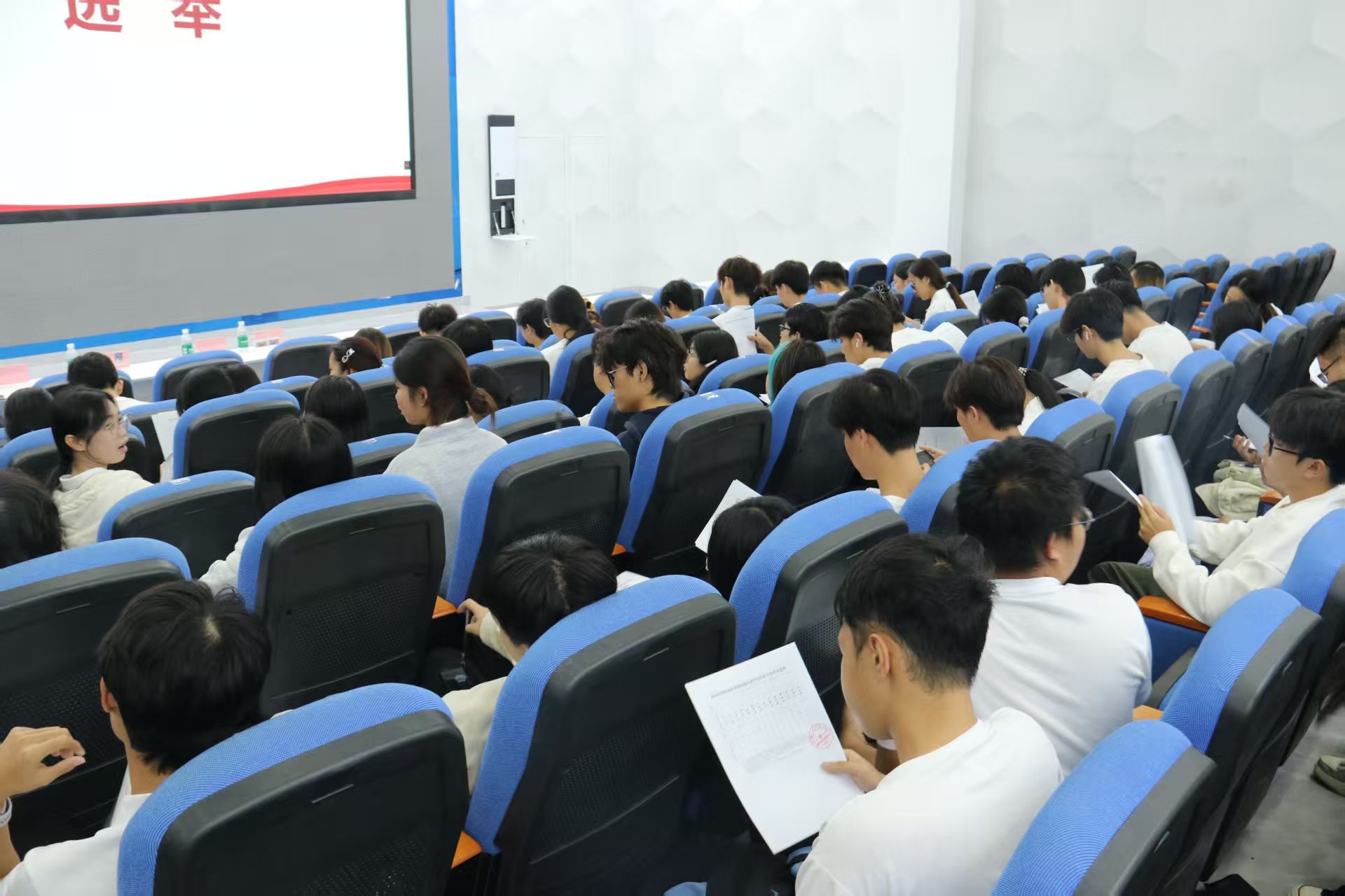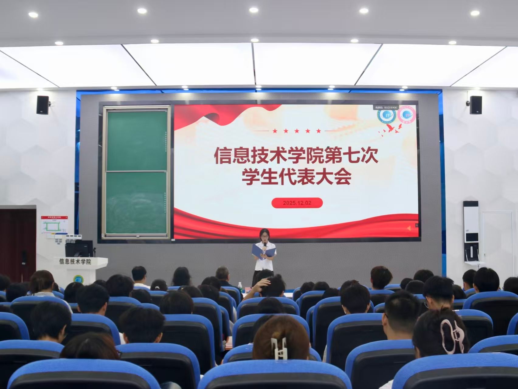 随后,激昂的国歌声奏响,全体参会人员肃立致敬,以庄严赤诚的姿态为本次学代会拉开序幕。