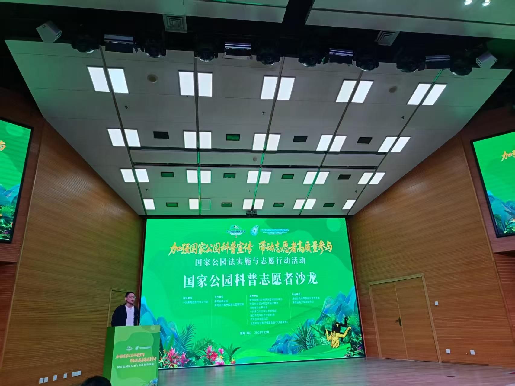 在《国家公园法》即将于2026年1月1日正式施行之际,2025年12月28日,“加强国家公园科普宣传带动志愿者高质量参与——国家公园法实施与志愿行动活动”在海南省图书馆举行。公司beat365英国官网网站未成年人科普志愿宣讲团受邀参加活动,并获授“绿岛热带雨林公益基金会国家公园志愿服务队beat365英国官网网站分队”专属队旗。