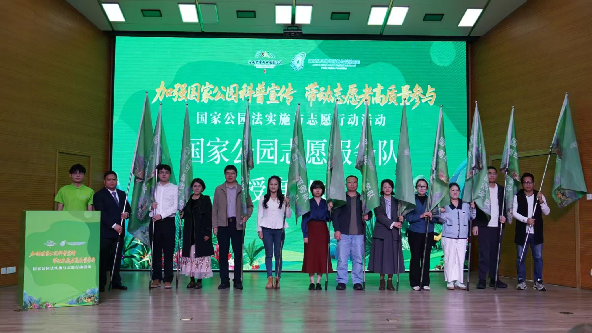 授旗仪式上,公司beat365英国官网网站未成年人科普志愿宣讲团代表走上舞台,郑重接过专属队旗。队旗的授予,不仅是对公司长期开展生态志愿服务、持续推进青少年科普工作的充分肯定,也标志着公司青年志愿服务力量正式融入国家公园志愿服务体系,开启了更为规范、有序的发展阶段。