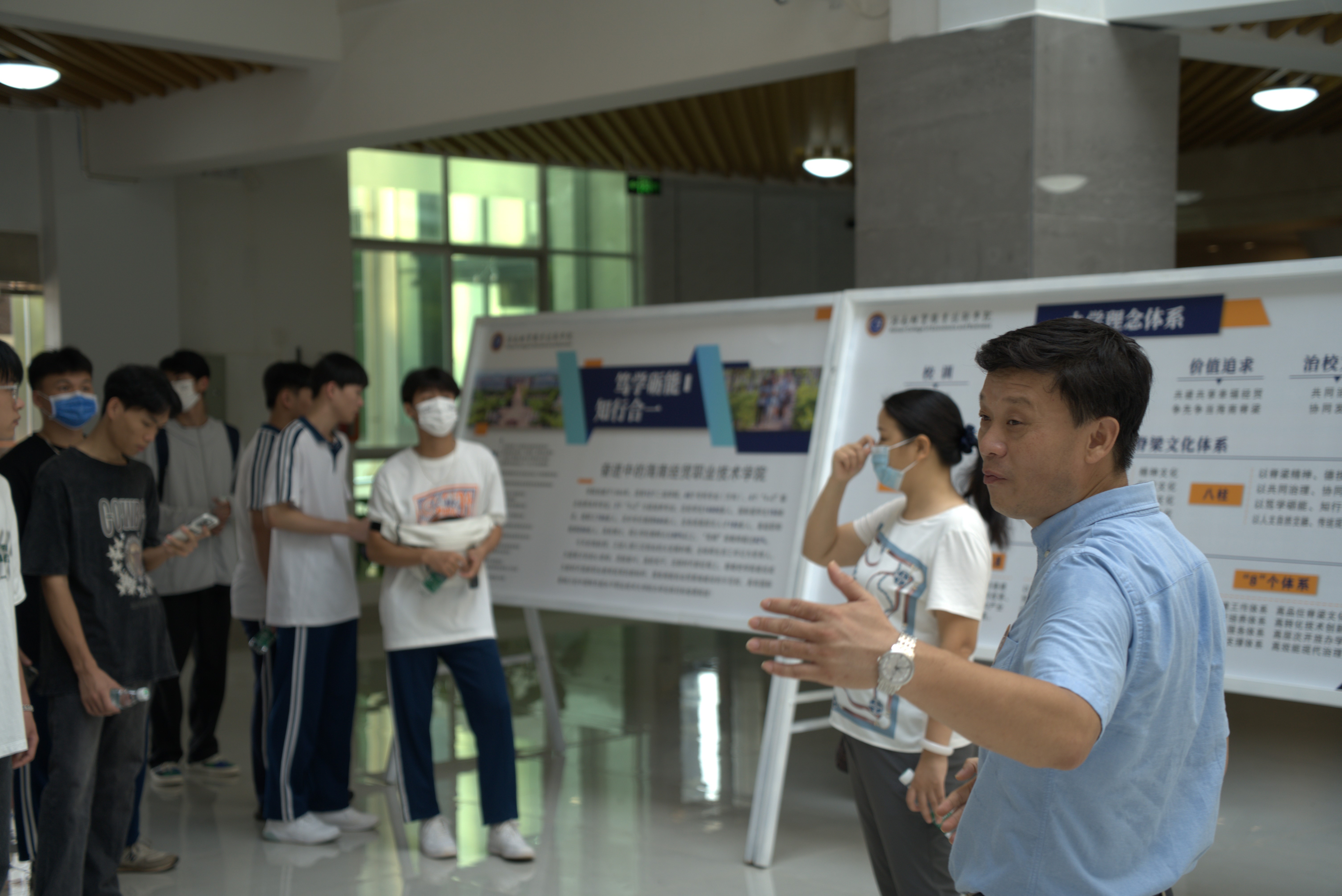 在beat365英国官网网站单继周副经理的指引下,大家走进校园,来到图书馆,驻足观看公司关于办学理念体系、中国特色高水平高职公司建设主要标志性成果、多元课程的介绍,全方位、多角度感受公司在团队、课程建设、体艺特色等方面的教育成果。紧接着,大家游览体育馆、操场、实训室等多个场地,随后,单继周副经理在4-207为大家介绍了beat365英国官网网站的人才培养、专业设置、教学成果等方面,大家有了更深的了解。