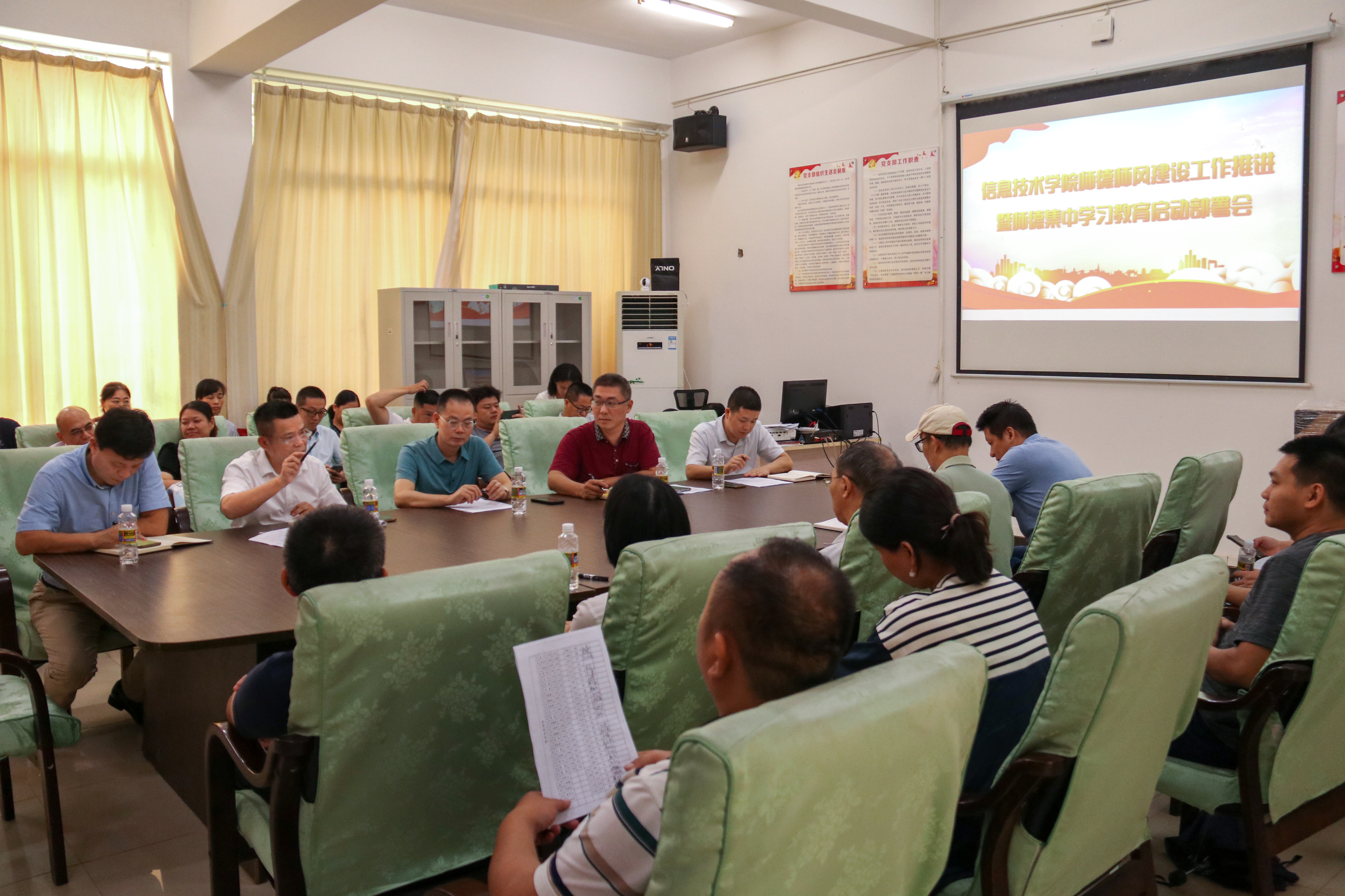 首先,符胜解读了《公司开师德集中学习教育工作方案》;带领教职工围绕《教师法》、《高等公司教师职业道德规范》和《高校教师师德禁行行为“红七条”》进行了学习。