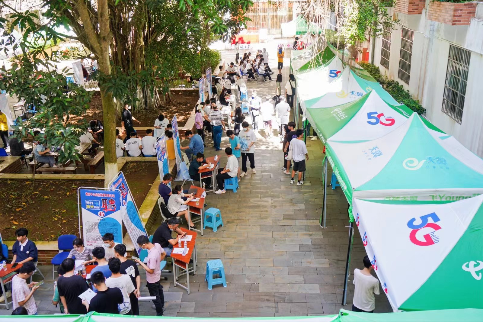 招聘会采取了现场招聘加线上直播的方式,现场求职氛围热烈,同学们手持简历,穿梭于各企业展位之间,浏览招聘信息、查看企业招聘简章,主动与企业代表们交流,了解用人单位的具体情况后纷纷投递出自己的简历。此外,企业代表们面对应聘者提出的疑问,都耐心地一一解答并提供了建议。