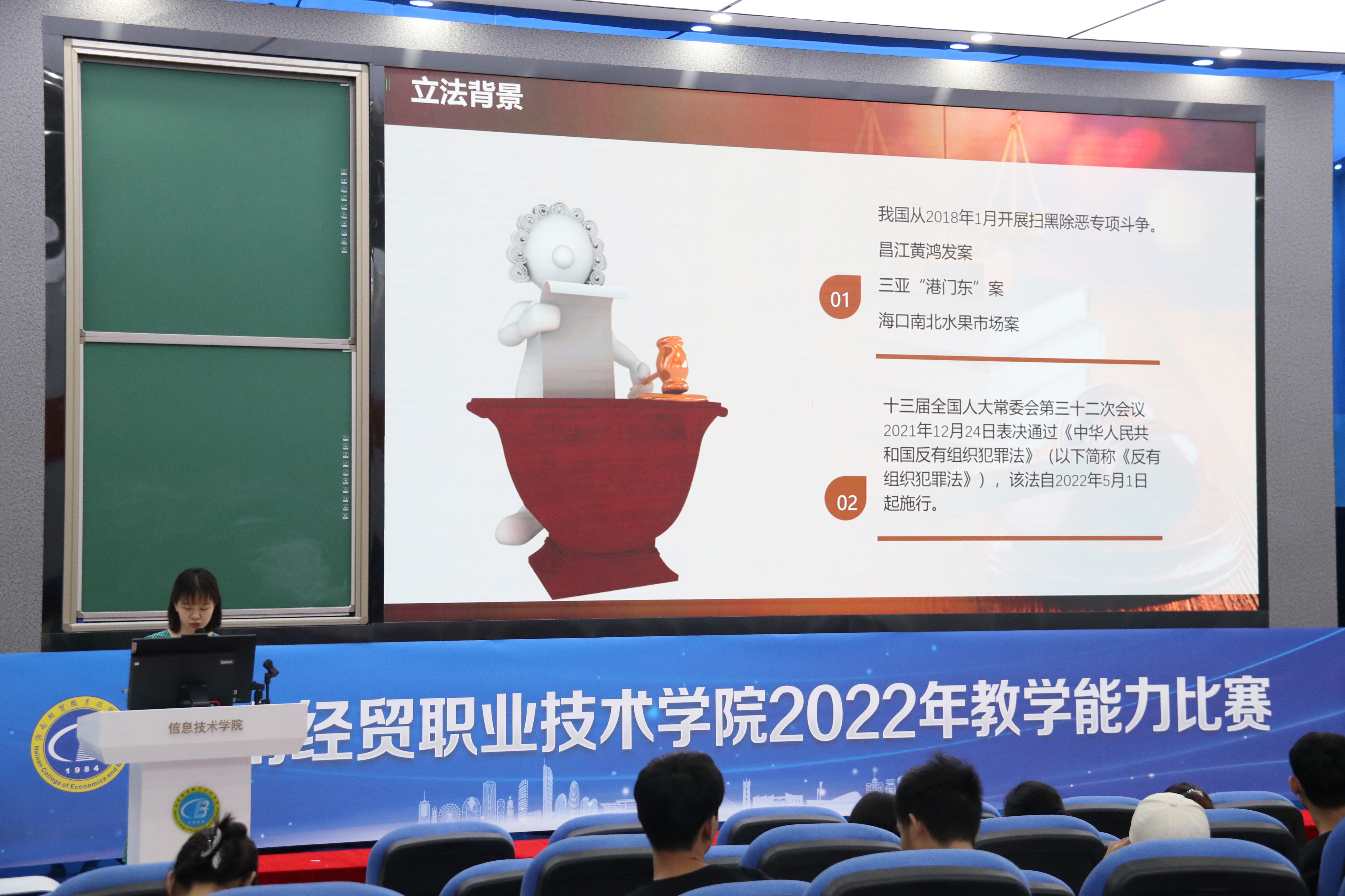 王老师以讲解海南涉黑涉恶案件为引,通过立法、依法从严惩治有组织犯罪、深挖黑恶势力”保护伞”等八大部分说明立法的必要性,并通过分述立法的目的、社会治理体系的升级、六大亮点和重大意义等,为大家解读了《反有组织犯罪法》的内容,给大家提出了五点建议。此外,王老师还播放了涉及“两卡”的电信诈骗宣传短片视频,提醒大家遇到可疑情况做到不轻信、不透露、不转账。