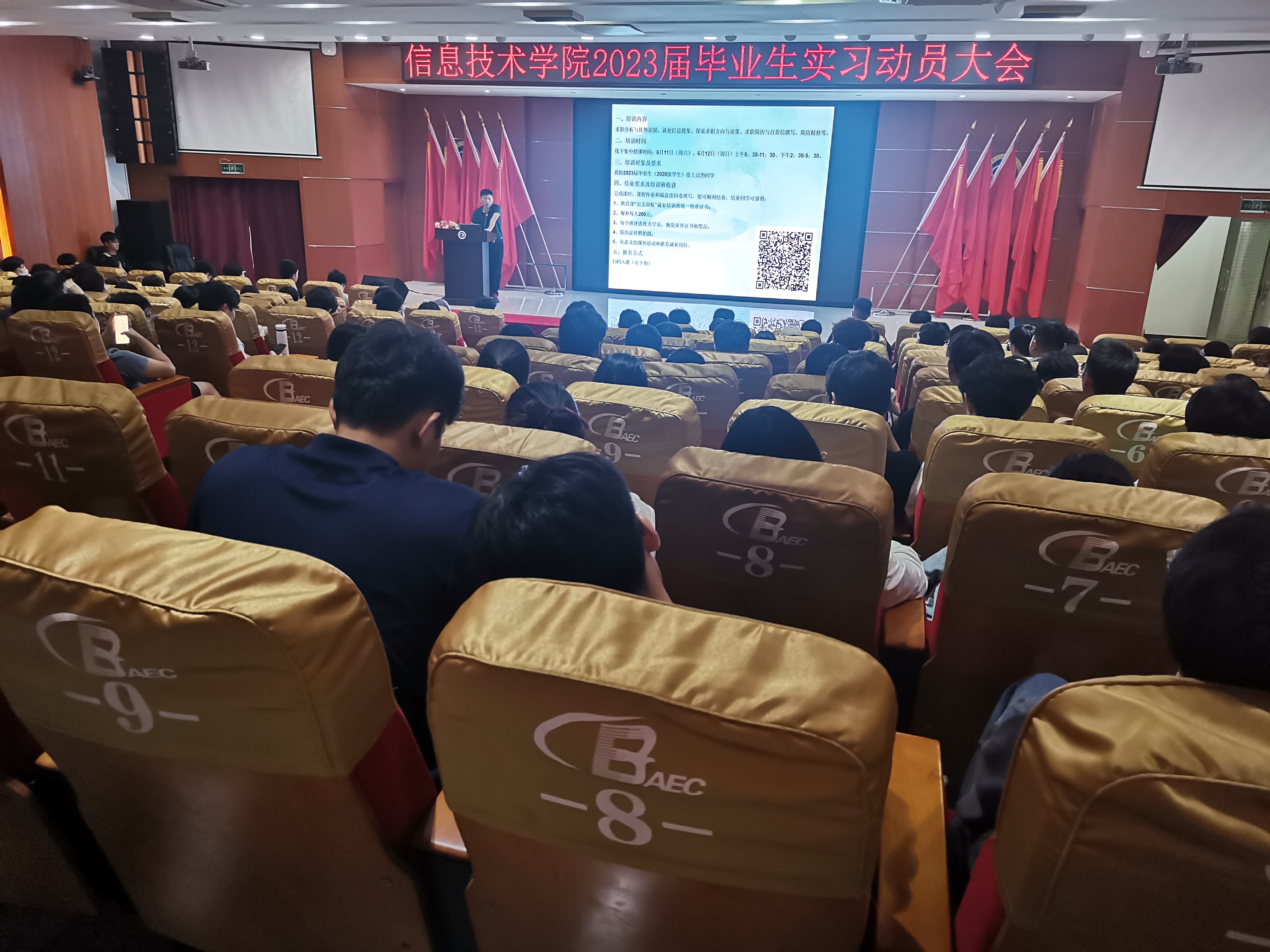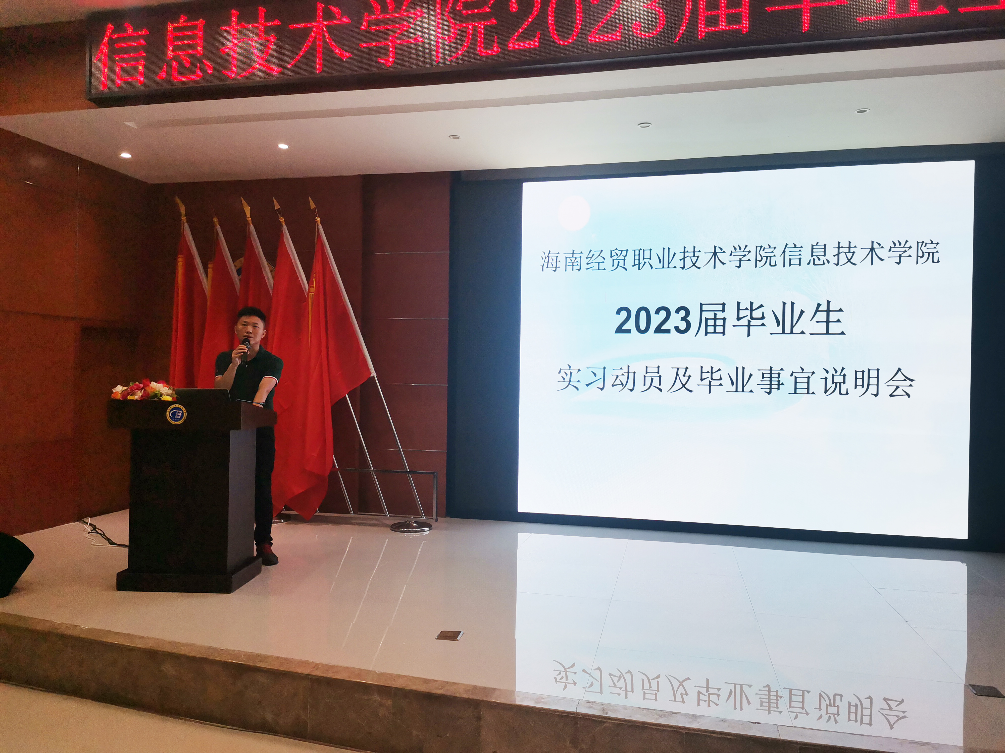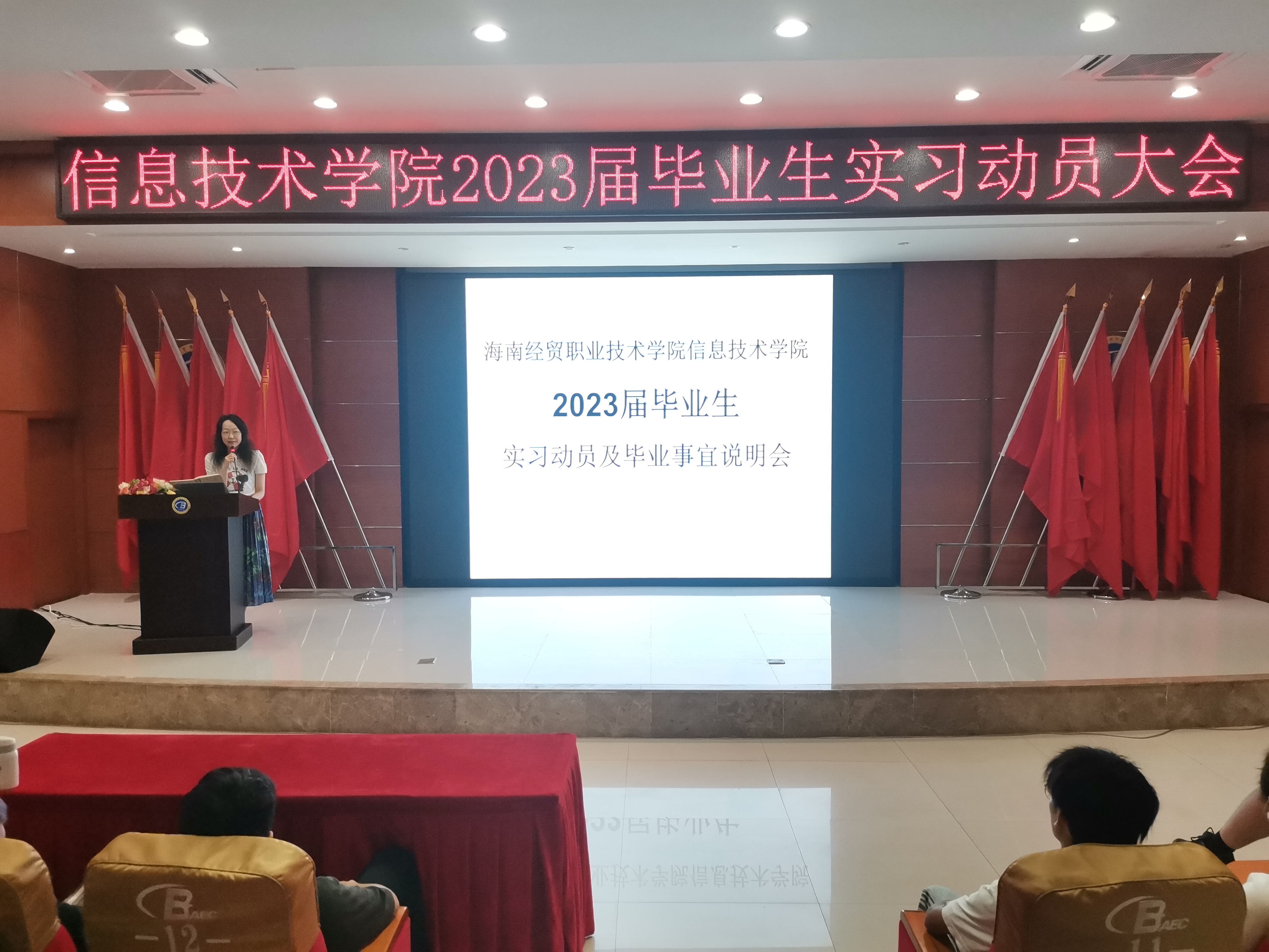 为进一步完善毕业实习工作,引导员工做好顶岗实习前的各项准备,推进实习工作顺利进行。6月8日,公司召开2023届毕业生实习动员大会,学工办主任梁其钰老师,辅导员代晓明老师,王智娴老师以及全体2023届毕业生到场参加。