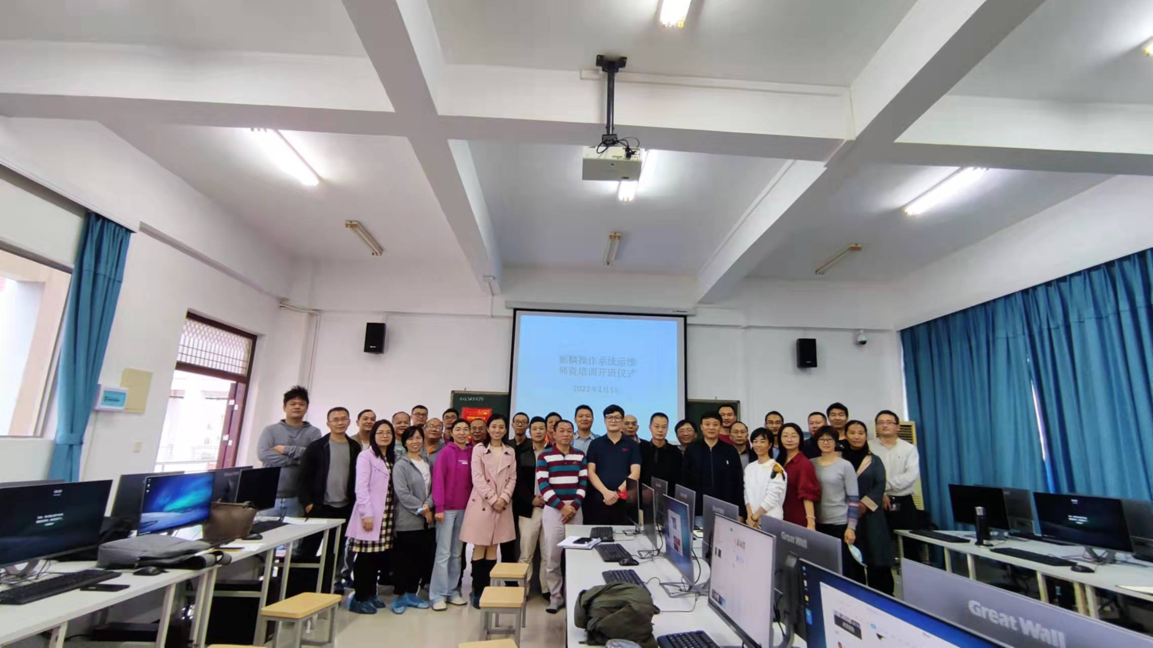 仪式伊始,王忠经理首先介绍本次培训的背景及课程的安排,并重点强调了操作系统国产化的重要意义。他希望参训学员严格要求自己,认真学习,为今后的教学工作打下良好的基础。最后,全体人员合影留念,麒麟操作系统运维团队培训开班仪式圆满结束。