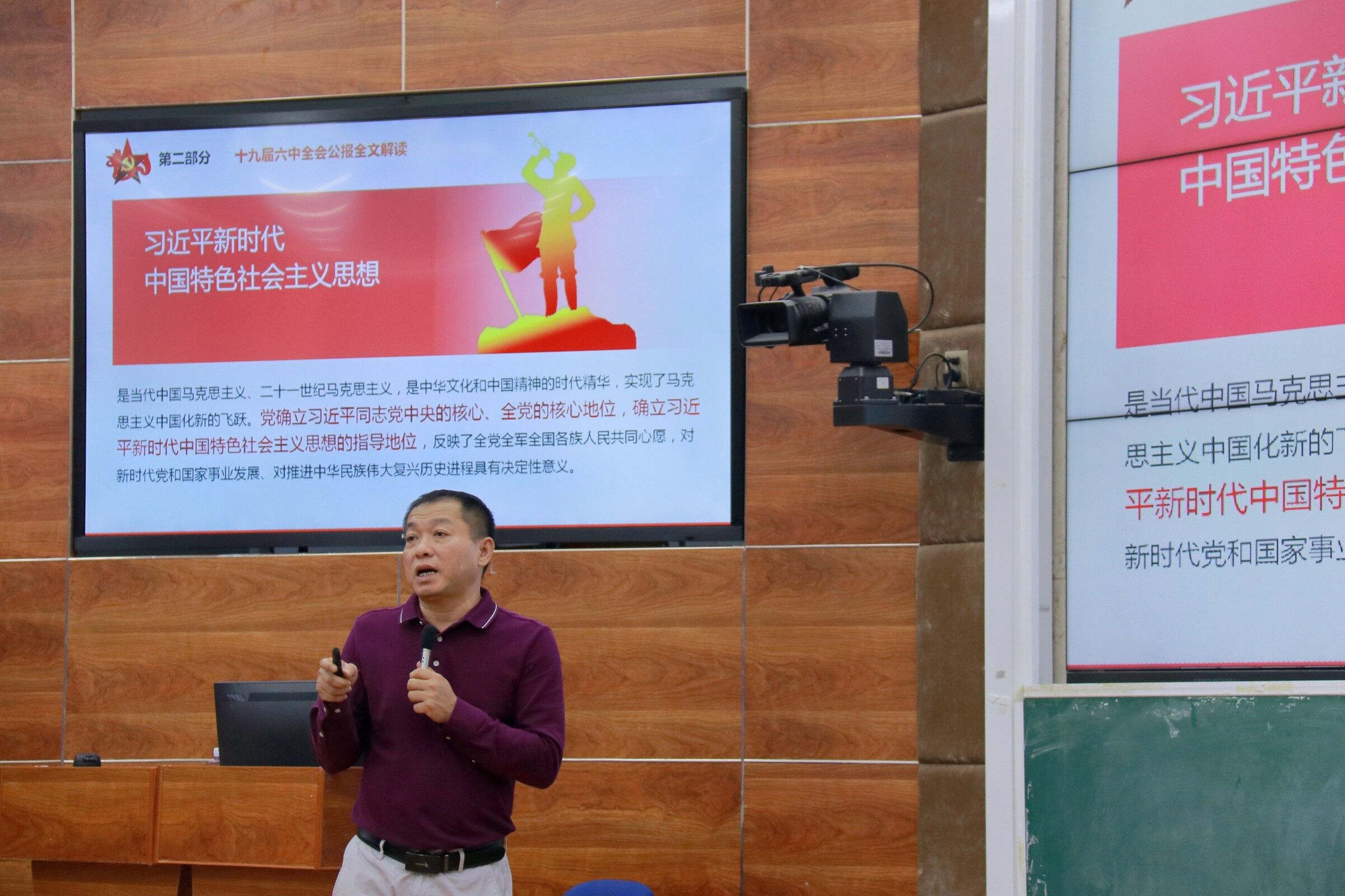 首先,孙金书记向全体同学解读本次六中全会的主要内容,主要包括十九届六中全会要文的基本概括,十九届六中全会公报解读,十九届六中全会到底有多重要等三方面内容,并详细的进行了逐一解读。