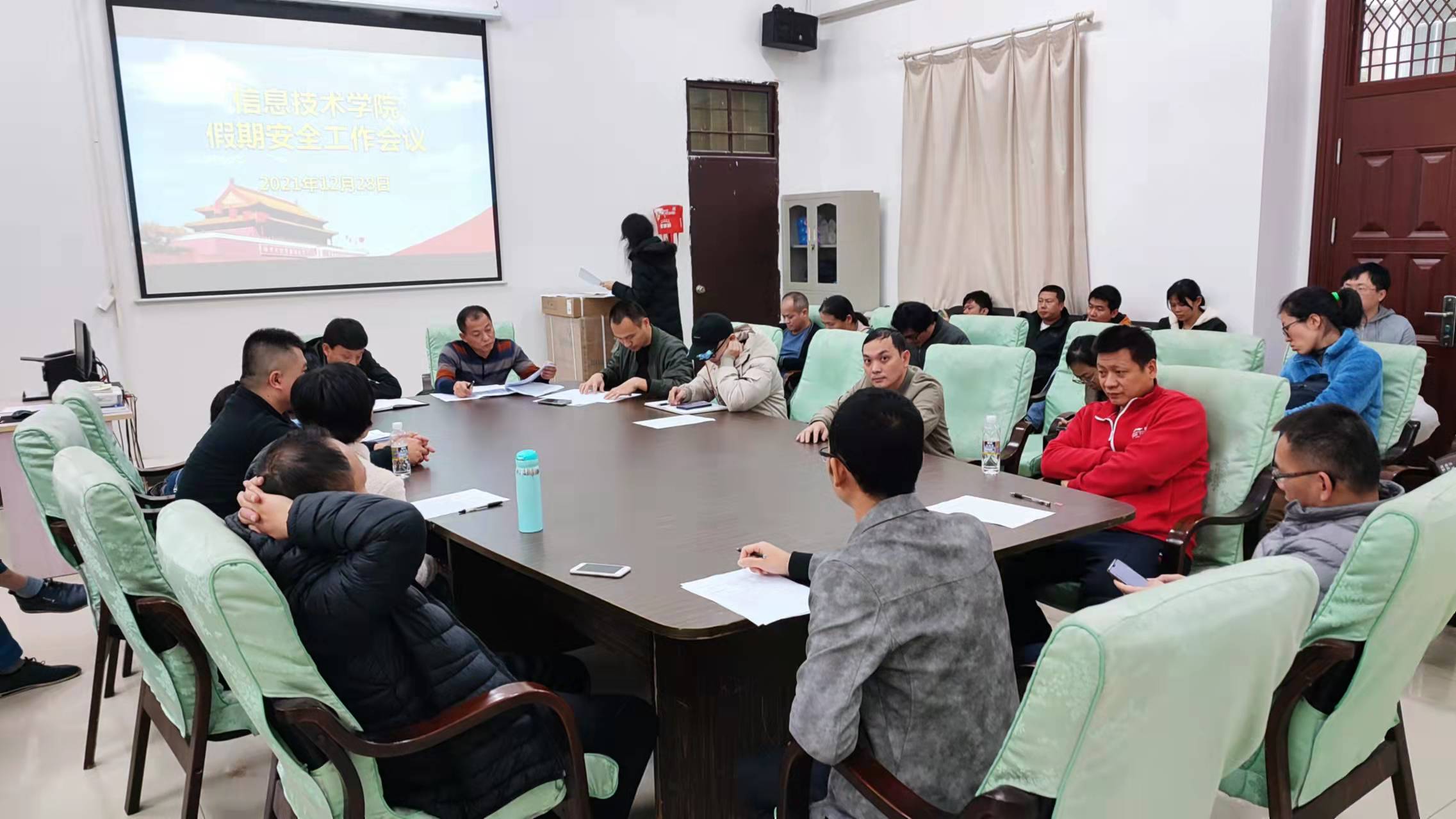 最后,孙金书记传达公司关于假期安全工作会议精神。他指出,期末考试已在进行中,要严格按照公司考试管理办法执行,规范考场管理、端正考风、严肃考纪、营造良好的考试环境。实训室管理员要提高思想认识,严要求做好实训室安全排查,确保实训设备安全。各班主任要提醒员工们时刻保持警惕,提高自我防护意识,确保人身安全。他强调,近日全国多地通报出现新冠确诊病例,要做好个人防护,非必要不出岛,尤其不要前往疫情中高风险地区。