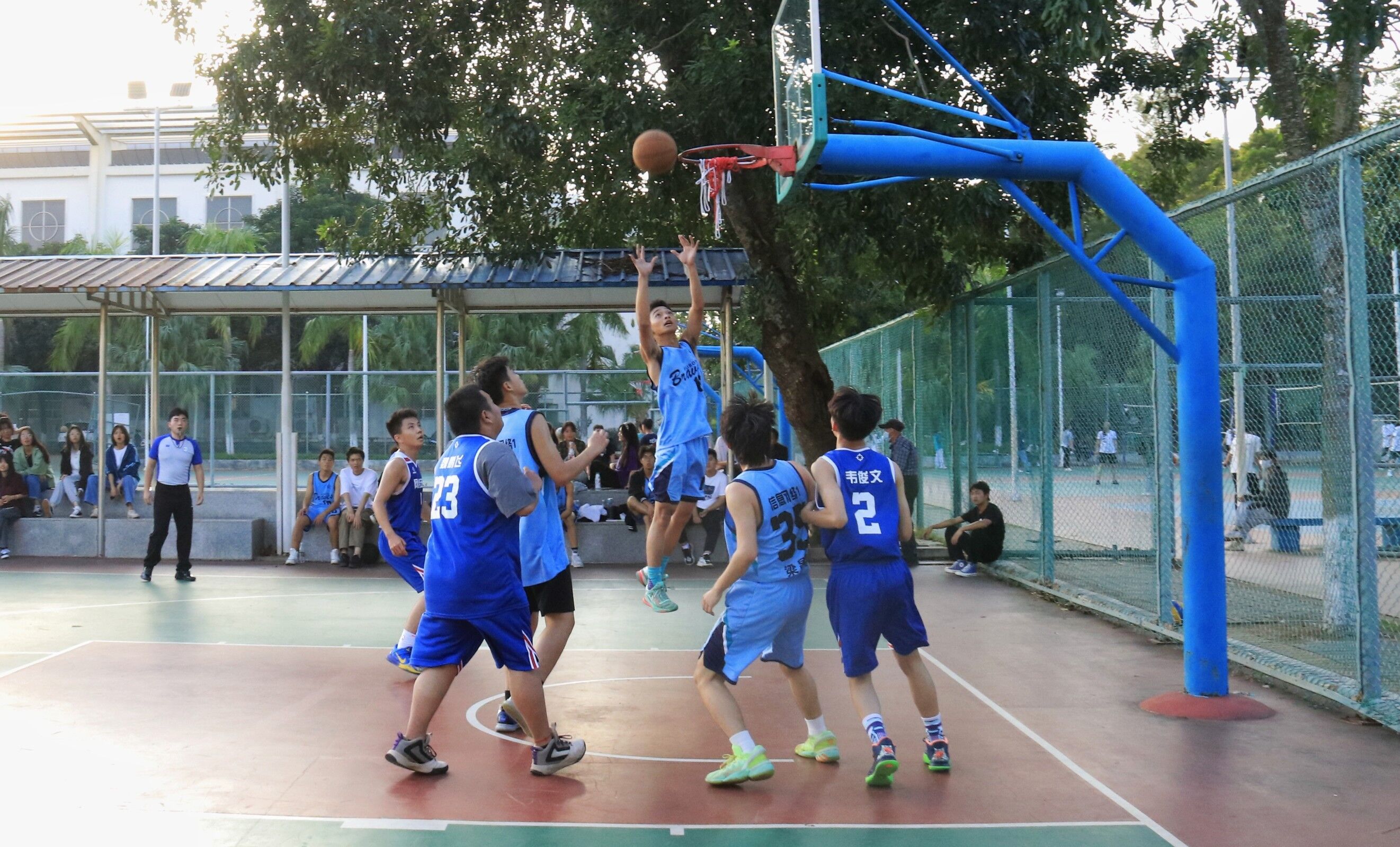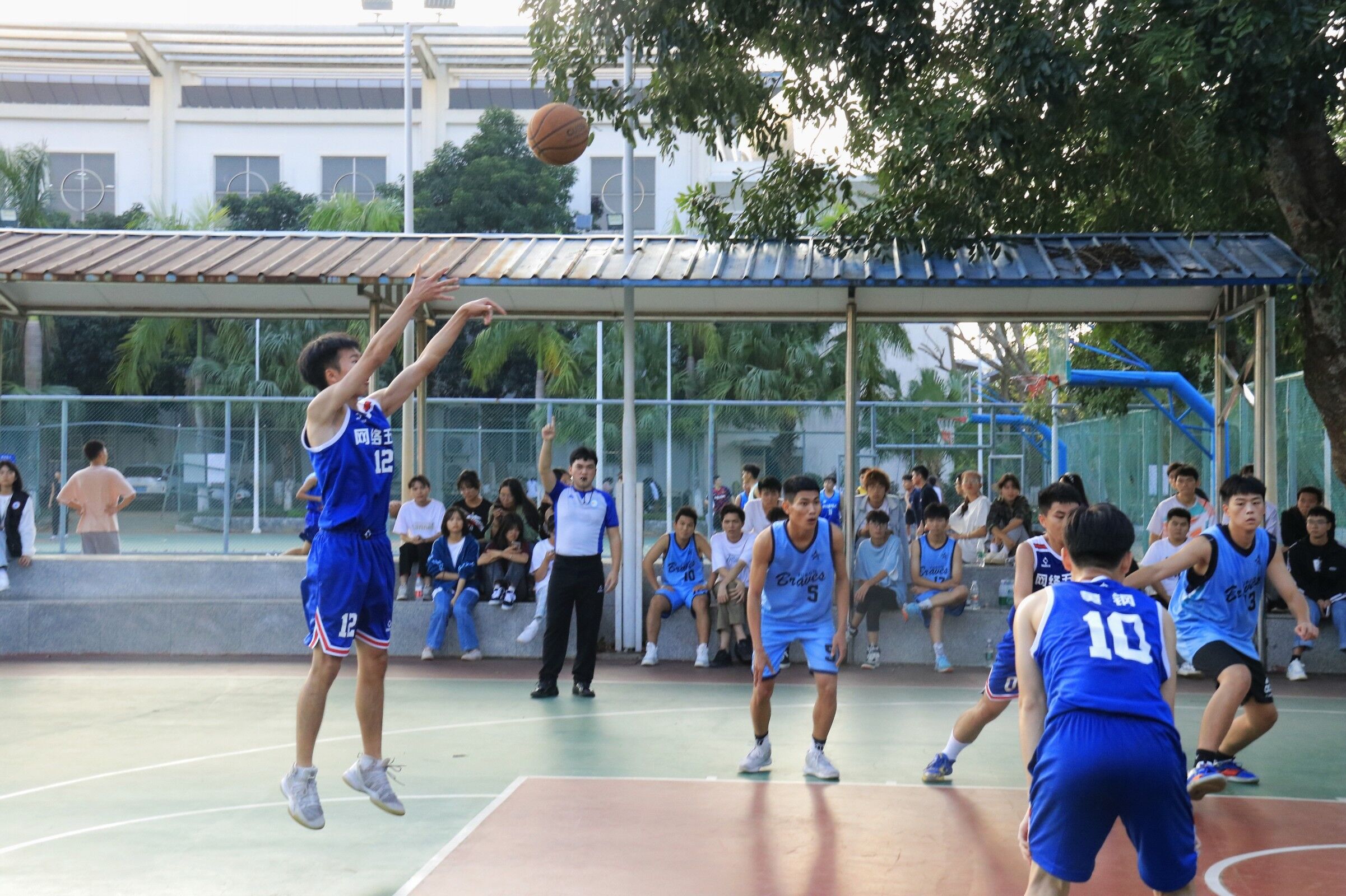 2021年11月12日(青年媒体中心 吴振慧讯),beat365英国官网网站于11月12日下午在篮球场进行21级“新生杯”篮球半决赛,此次参赛队伍是网络五班和网络一班,无课员工都到场为比赛队员加油打气。
