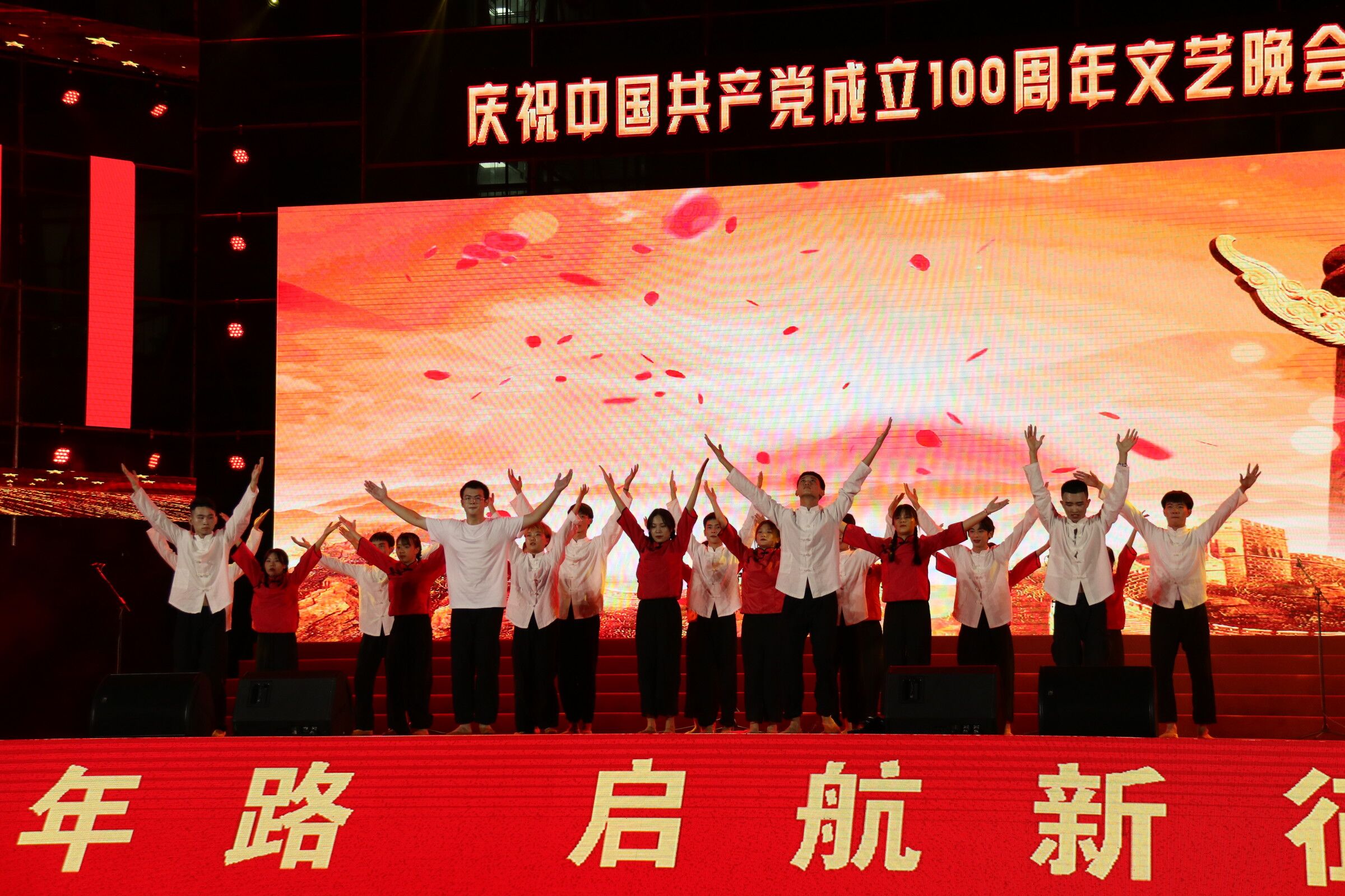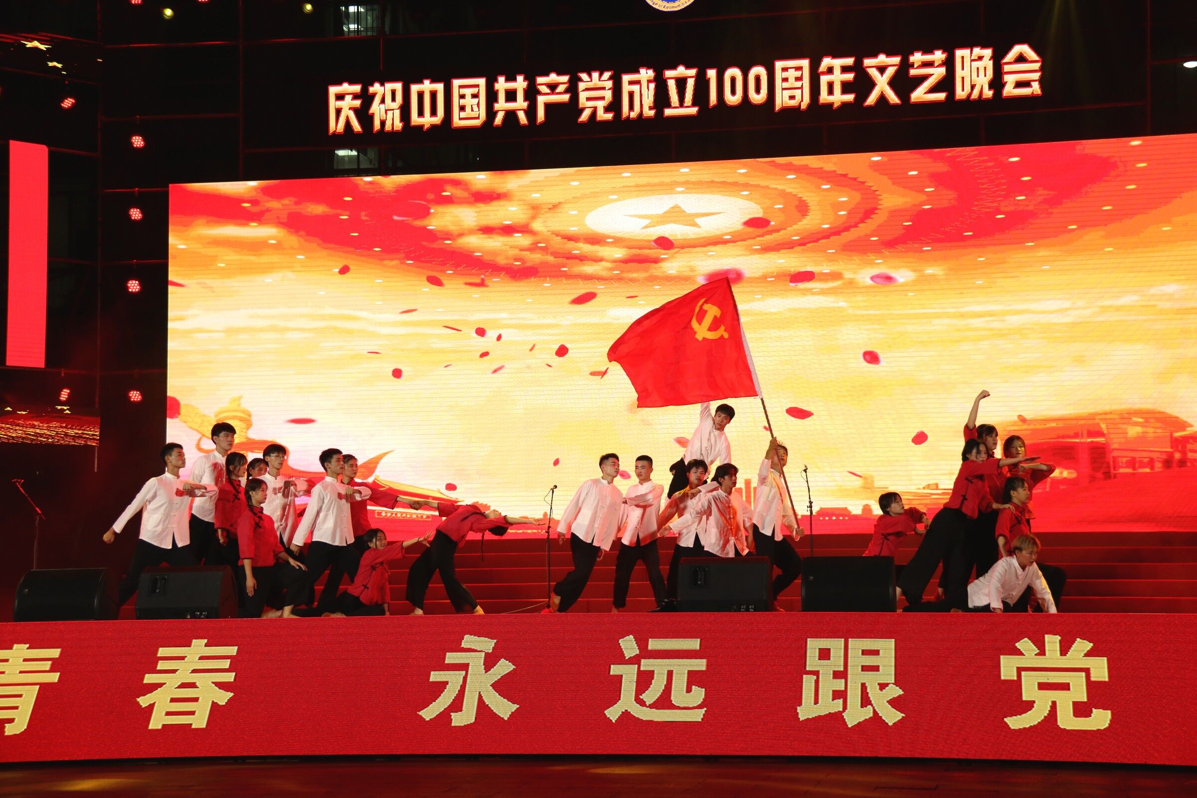 为庆祝建党100周年,beat365英国官网网站于6月30日晚在经贸广场隆重举办“永远跟党走,启航新征程”文艺晚会。