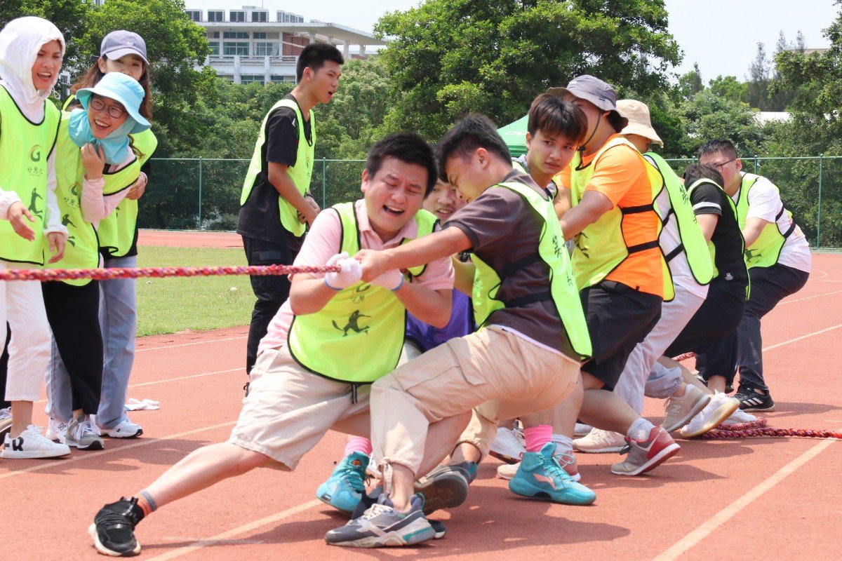 上午,海南好思达公司的董事长吉小明做了开幕致词,吉总对本次运动会的成功举办表示感谢,对好思达全体员工及beat365英国官网网站到场的师生表示欢迎,他提倡每个人在学习和工作之余必须参加体育运动,公司的运动会以后每年也都要开展。在热烈和紧张的氛围中,今天的运动会也拉开了帷幕,上午进行的项目有男子/女子 4*100米接力、男子1500米,女子800米、龟兔赛跑、拔河以及指压板跳绳,各组队员不甘示弱,激励奋进,为了队伍的成绩和排名使出了全部力气。