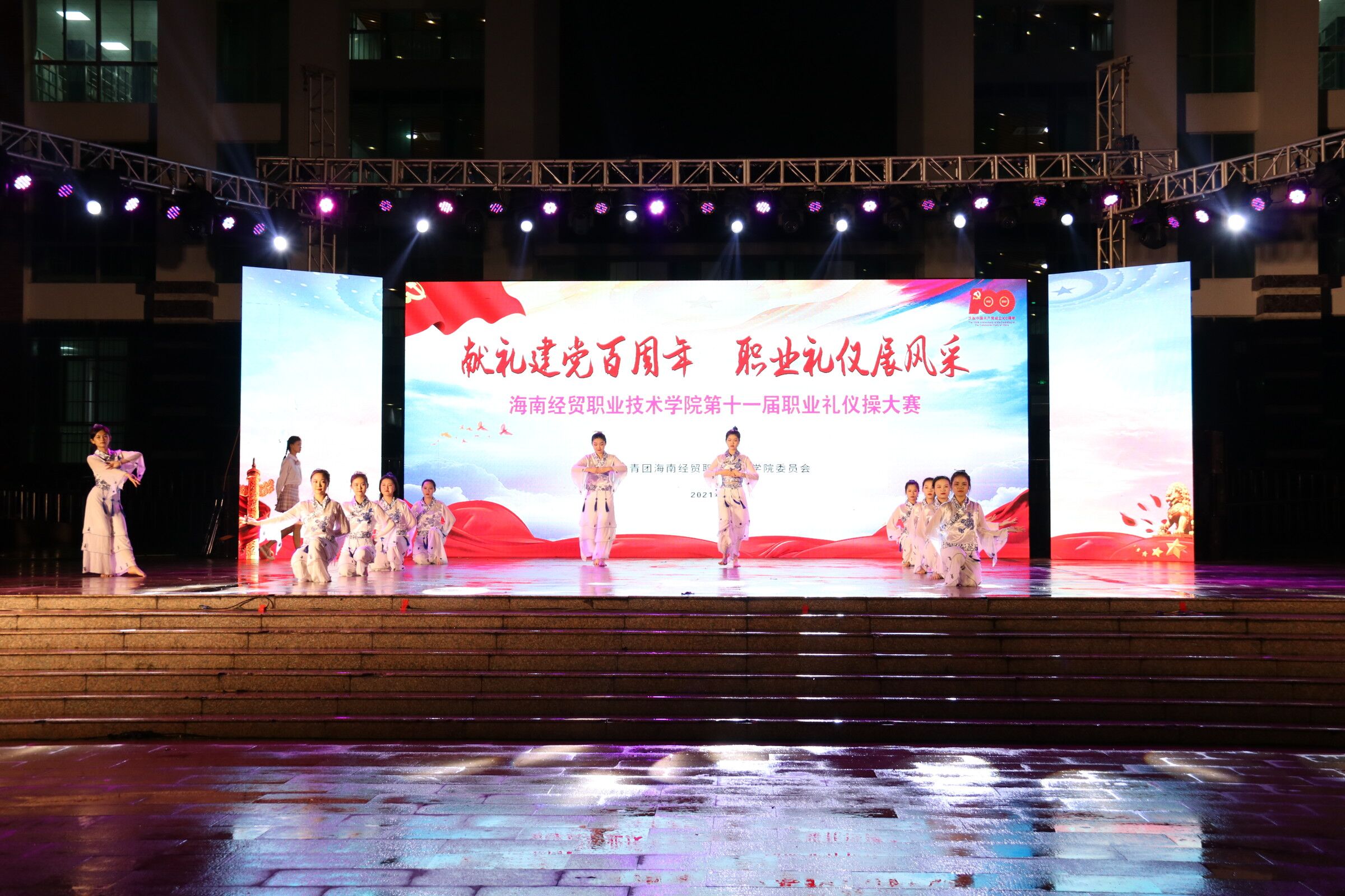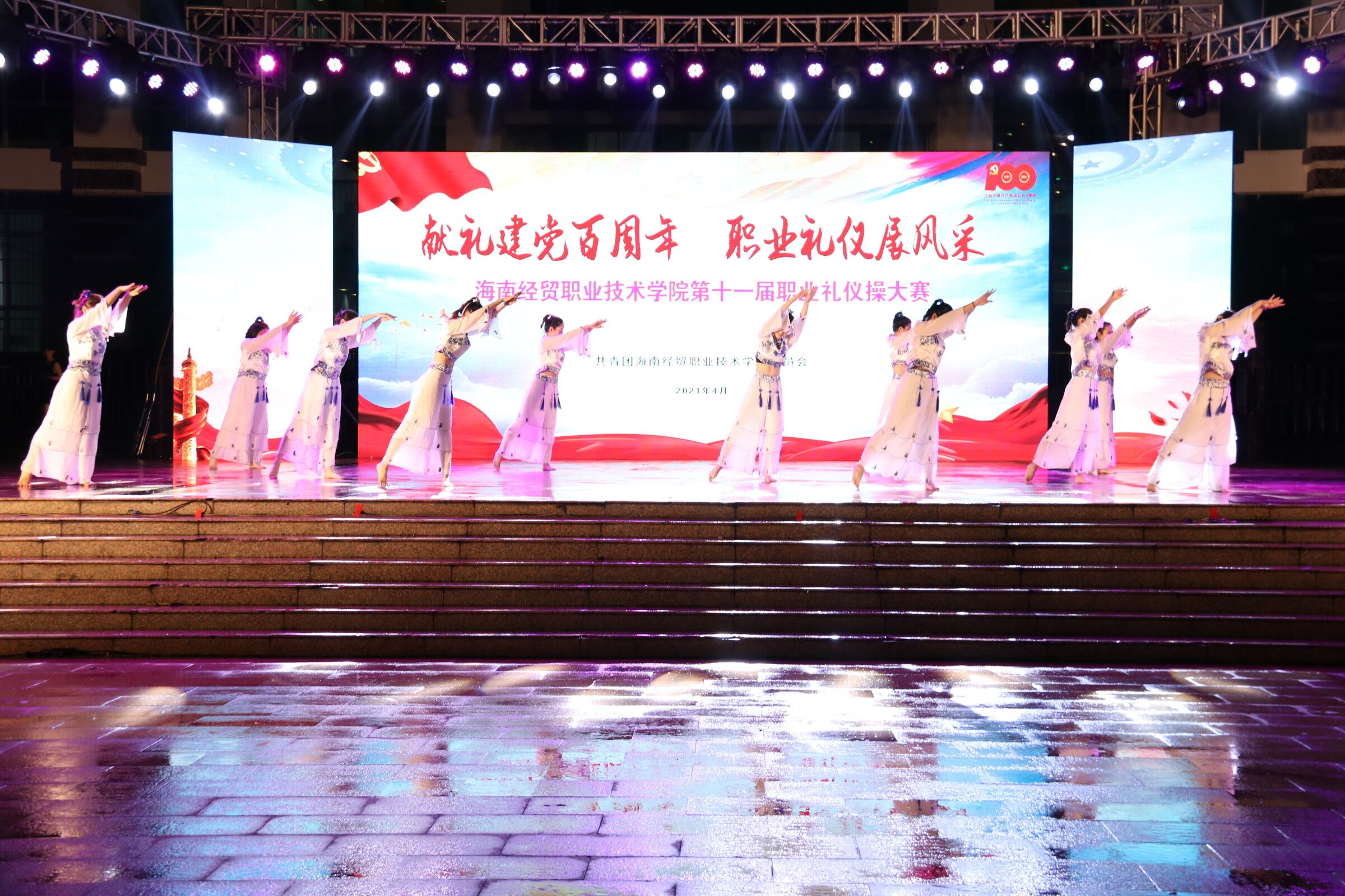 (2021年4月27日 青年媒体中心 黎扬振)讯。庆祝建党100周年,职业礼仪展风采,beat365英国官网网站第十一届职业礼仪操大赛,于4月27日晚上7点在经贸广场如期举行。