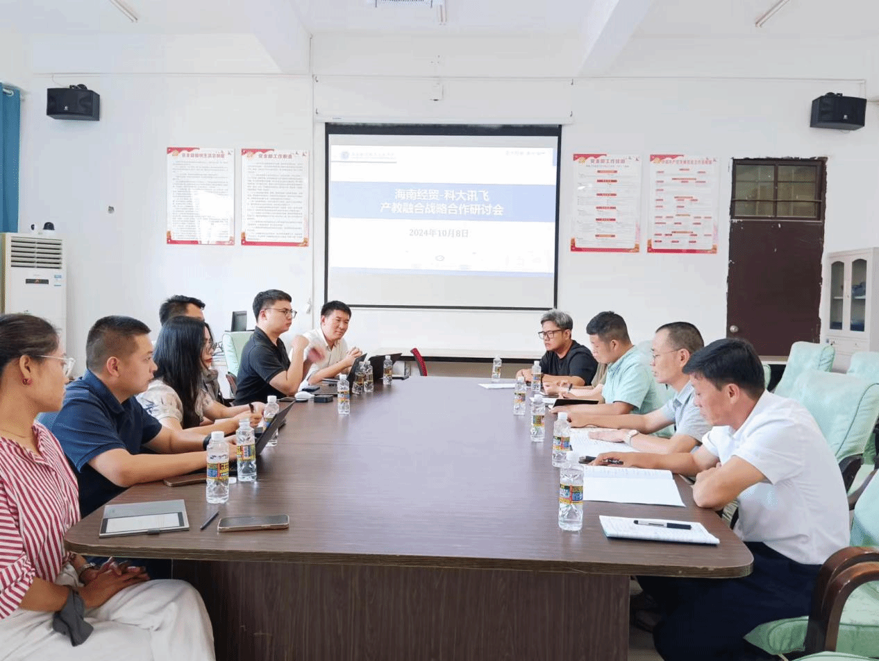 10月8日下午,科大讯飞股份有限公司高教研究院经理李礼率队访问公司,就产教融合和校企合作方面进行交流与探讨。会议由经理王忠主持。科大讯飞海南大区教育行业总监汪晓玉、智算中心市场经理虞翔盛、海南大区教育客户经理张丽丽、高教事业部市场经理余帅、高教客群市场方案部咨询经理黄志原与beat365英国官网网站王忠经理、单继周副经理、康东副经理和软件专业杨博博士、人工智能专业谢磊副教授参会。