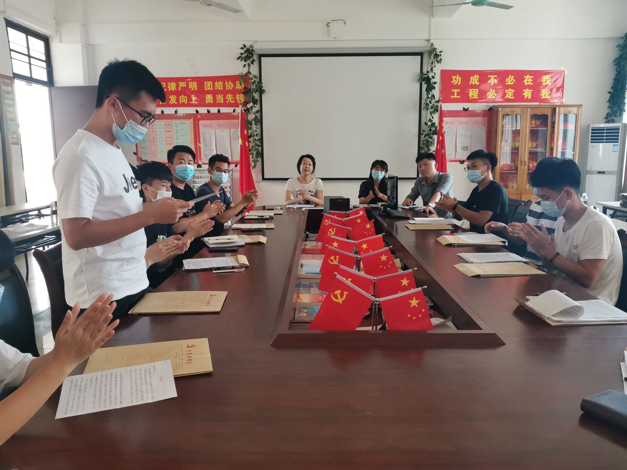 首先,大会的第一项内容是16名发展对象汇报自身近一年的工作状态、学习心得、发展目标、思想进步,并表达了他们的入党动机和对加入中国共产党的强烈渴望与决心。随后,大会第二项是由入党介绍人代晓明老师与郭蓉佳老师对16名发展对象在学习、工作、实践活动等方面进行评价,代晓明老师依次指出了16名同志的一些不足之处,并对他们作为员工干部以来的付出给予了肯定与感谢;郭蓉佳老师、梁其钰老师也依次发表了自己的相关意见。大会第三项是由在场有表决权的正式党员对16名发展对象进行无记名投票,根据表决结果,公司成功将16名发展对象吸收为预备党员。最后,在座全体党员老师和发展对象进行了庄严肃穆的入党宣言,16名发展对象依次发表自己的感言。