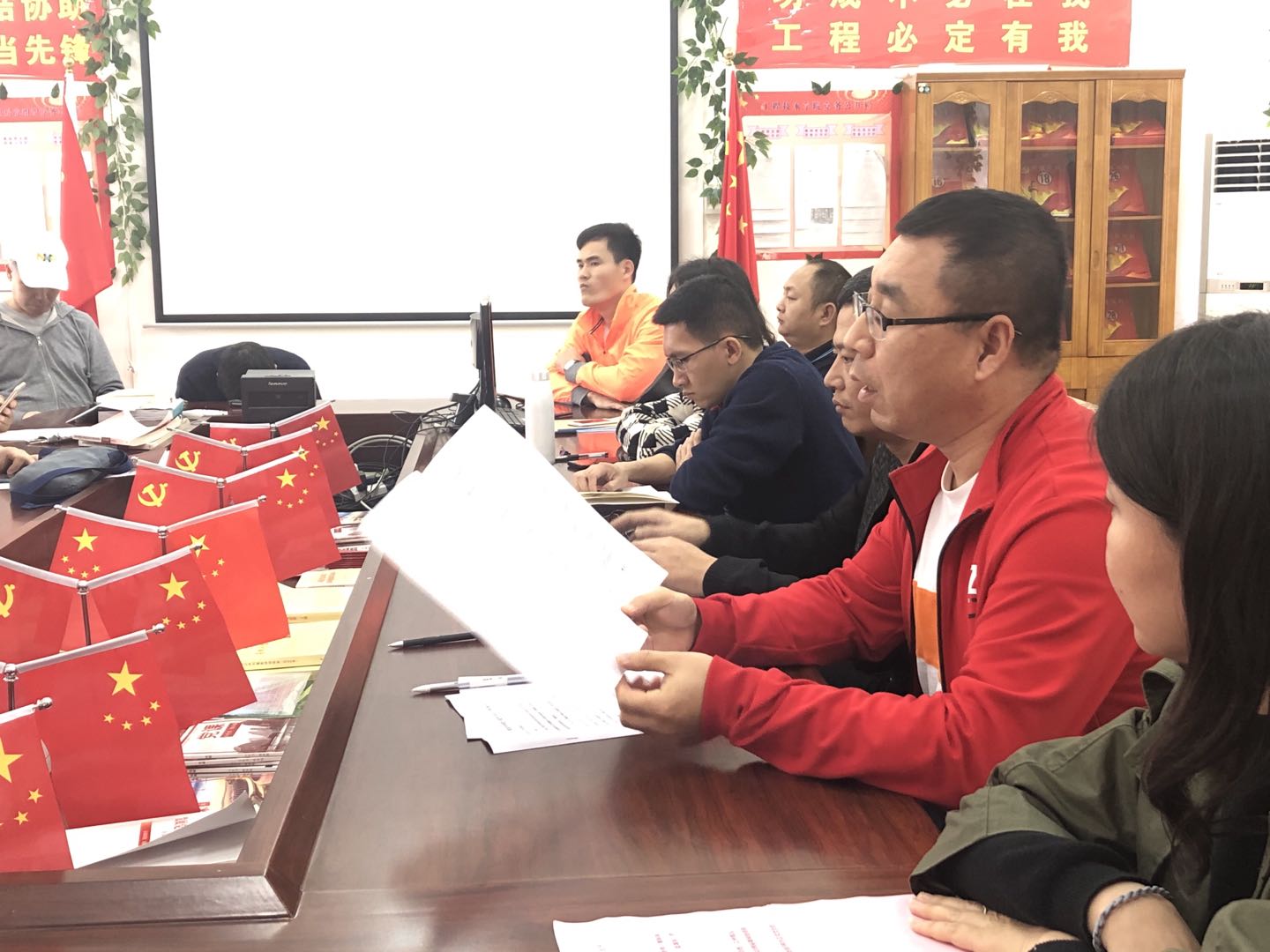 员工党员观看《追寻》,员工代表发言