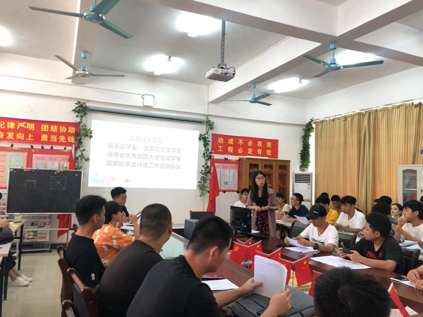 郭蓉佳老师主持会议并带领各班长学习公司员工工作处下发的关于“公司奖学金”评审工作、全日制残疾员工、特殊家庭经济困难员工减免学费和住宿费工作、国家奖学金评审工作、国家励志奖、国家助学金及海南省优秀贫困老员工奖学金评审工作的通知。随后向大家讲解申请各奖助学金的注意事项、所需资料、班级名额分配、资料提交时间。