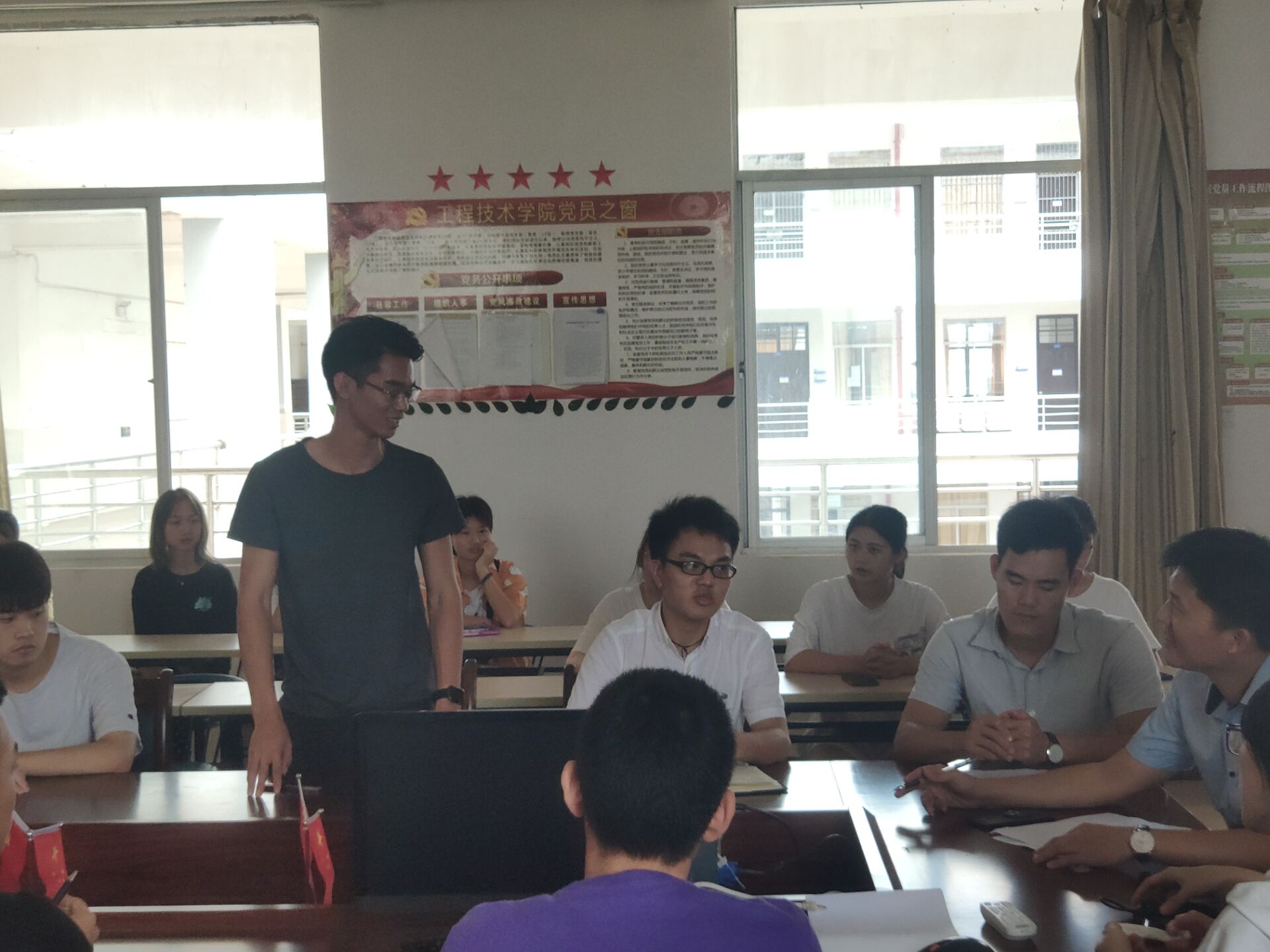 2019年10月25日(青年媒体中心 孙任科报道)讯,为了遵循习近平总书记提出的“不忘初心,牢记使命”思想,10月25日上午11时,公司于第二教学楼418课室隆重召开“不忘初心,牢记使命”的主题会议。会议由公司员工党支部书记代晓明主持,公司党总支副书记陈亚芳、学工办主任梁其钰、17级辅导员唐图、18级辅导员郭蓉佳、19级辅导员鄢兴祥以及公司全体预备党员、全体入党积极分子参与本次会议。