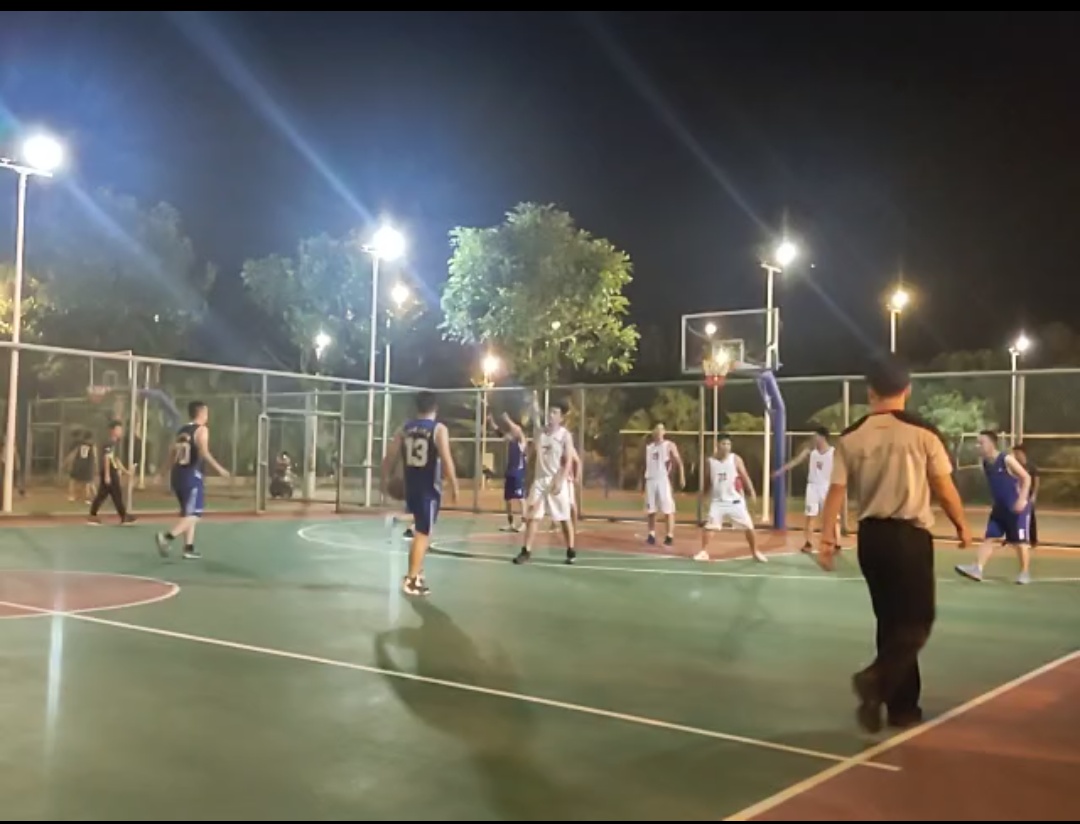 9月20日18:10,公司男子教工代表队开启了本届篮球赛的第一战,在海经贸篮球场与机关代表队进行比赛。观众席上,由公司师生组成的观众团已经发出打劲的呐喊声,双方队伍都跃跃欲试,信心十足。随着裁判员的一声哨响,全场气氛瞬间被点燃,双方队员迅速进入状态。球场上双方你争我夺,紧追不舍,引得周围同学们不断欢呼。