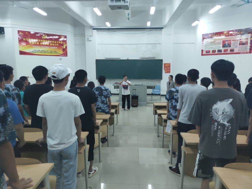 2019年9月25号(院青年媒体中心)讯,为了庆祝祖国成立70周年,公司举办了纪念建国70周年“脊梁杯”2019级新生大合唱比赛,各个公司积极参与活动。距离比赛时间不远,公司老师和同学们自9月22日起,在每天军训结束后利用中午与晚上自习时间在2-102教室进行大合唱练习,主要参与的成员有:18级蔡玉意同学,以及19级大合唱的同学们。