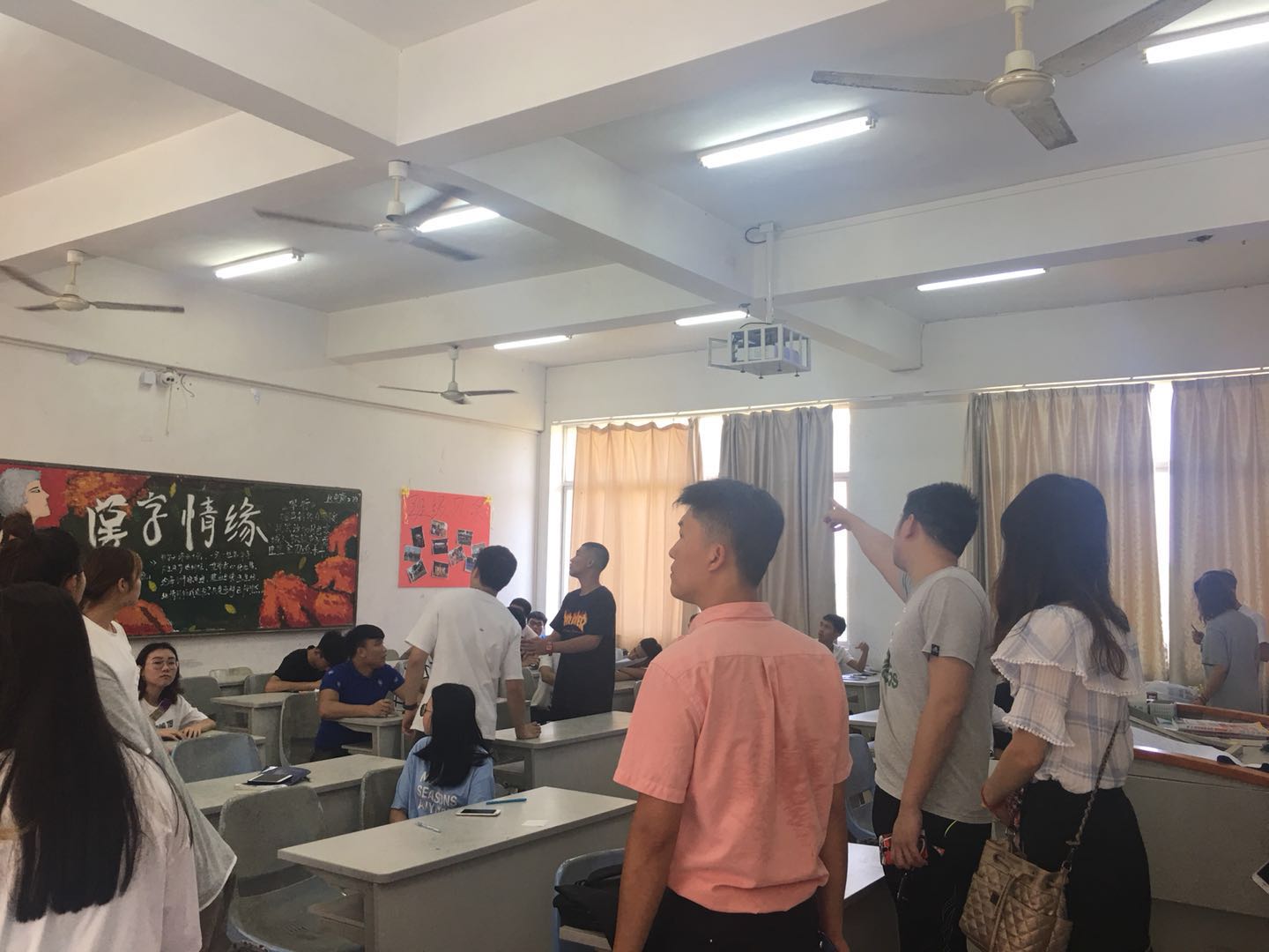 周恺老师、18级辅导员代晓明和郭蓉佳老师,展开“班级文化布置”的考察工作,并对此提出如何打造良好班级环境,如何树立班级形象的宝贵建议,考察对象为18级全体班级。