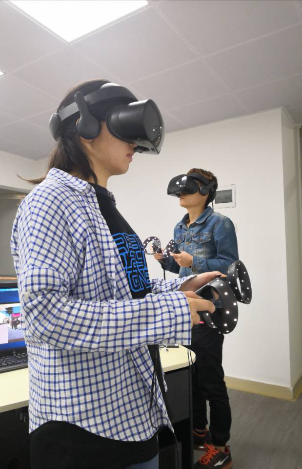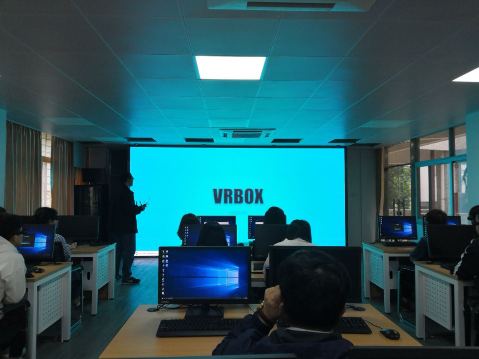 3月24日,我们到达了本次学习活动的最后一站,由上海曼恒数字技术股份有限公司与广东工贸职业技术公司联合承办的“VR实训中心”上海曼恒公司技术人员为我们介绍了VR BOX(VR作品展示平台)并在实训室让我们体验最新 VR多人沉浸式交互技术(利用不同设备使多人在同一场景进行互动)。