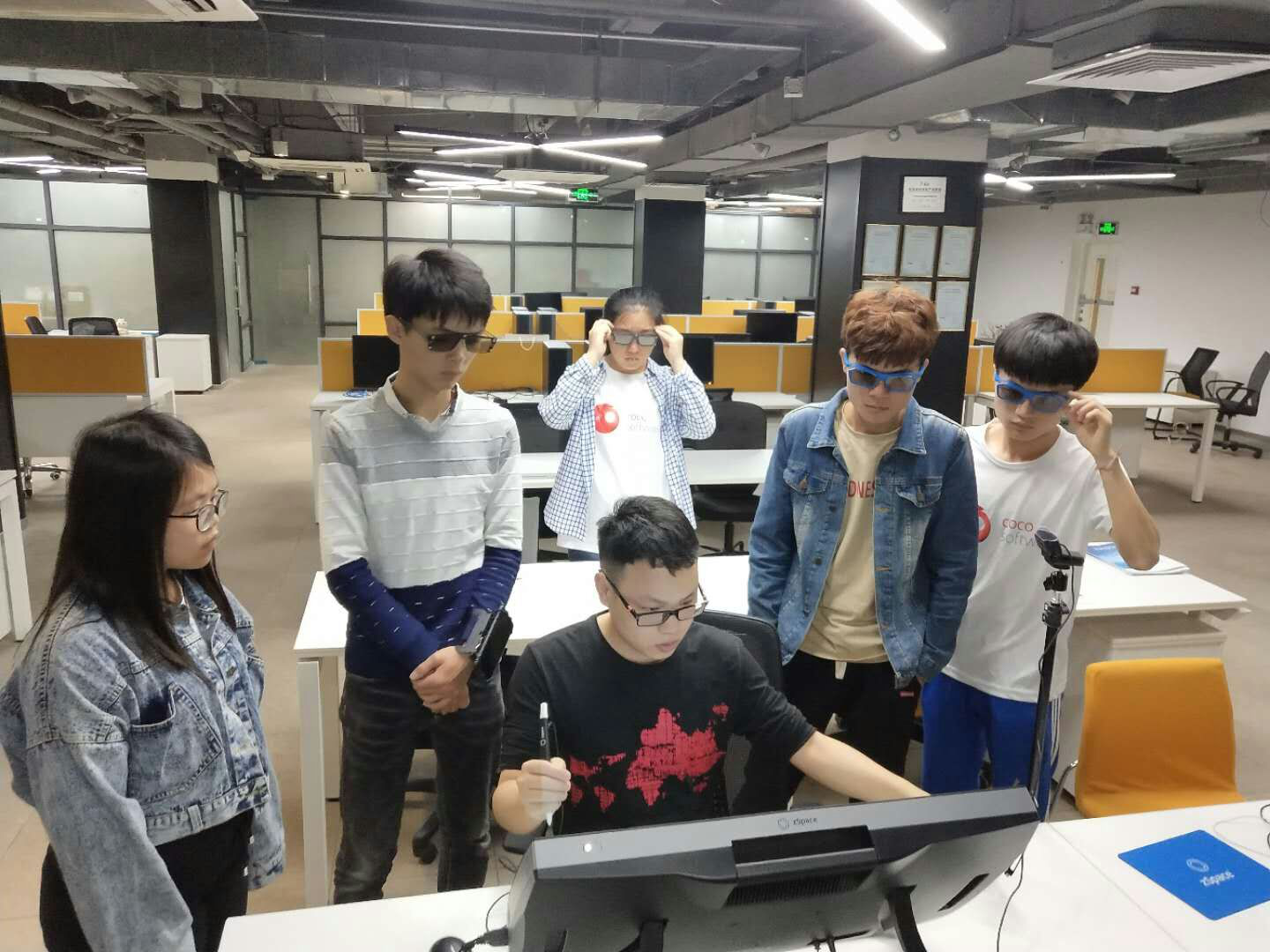 图12,公司工作人员带领我们参观他们的工作环境及其大量有关VR设备
