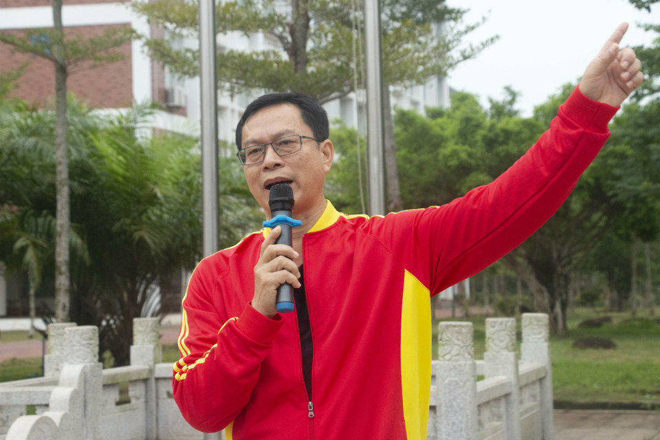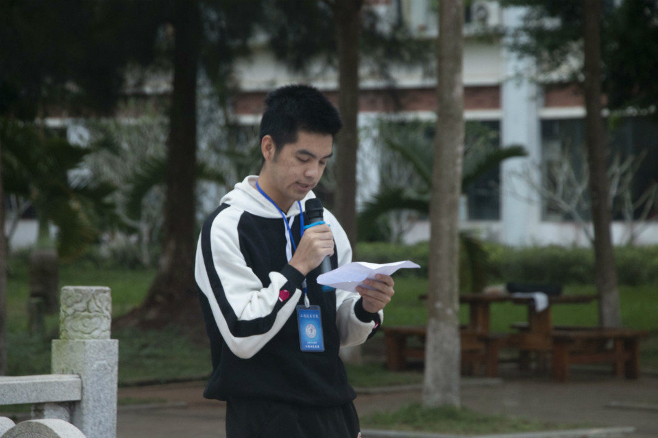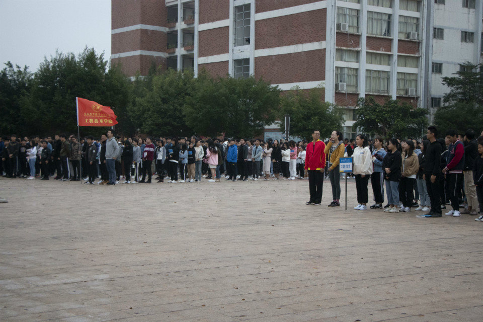 升旗仪式礼毕后,员工干事代表谭超铨上台发言,提出要爱国强国,团结一致。随后,党总支书记陈继敏书记上台发言。党总支书记陈继敏在讲话中总结了过去1个多月的表现,提到17级同学要提高出勤,18级同学要继续保持出勤。同时对全体同学提出要遵守校规,努力学习,在期末考试中取得好成绩,做到不挂科。