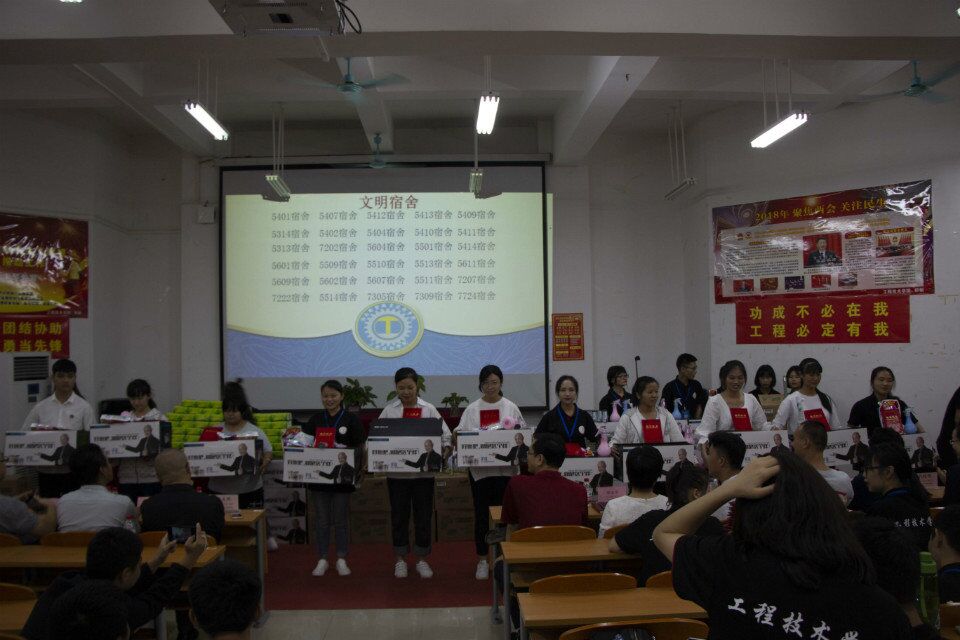 表彰会上工程技术公司主要对2018年一年来“三好员工”、“优秀班干部”、“纪律标兵”、“体育标兵”、“文艺标兵”、“优秀宿舍长”、“军训标兵”、“军训期间优秀宿舍长”、“新生奖学金”、“公司奖学金”、“优秀班主任助理”、“优秀员工干部”、“优秀干事”、第二届劳动竞赛中获得第一名、第二名、第三名、“劳动积极分子”、“文明宿舍”“运动员积极分子”等17个奖项分17个批次获奖员工上台领奖,共有150多名同学获得了表彰,会上,还对工程技术公司新产生的“第四届团学青干部”颁发了聘书。