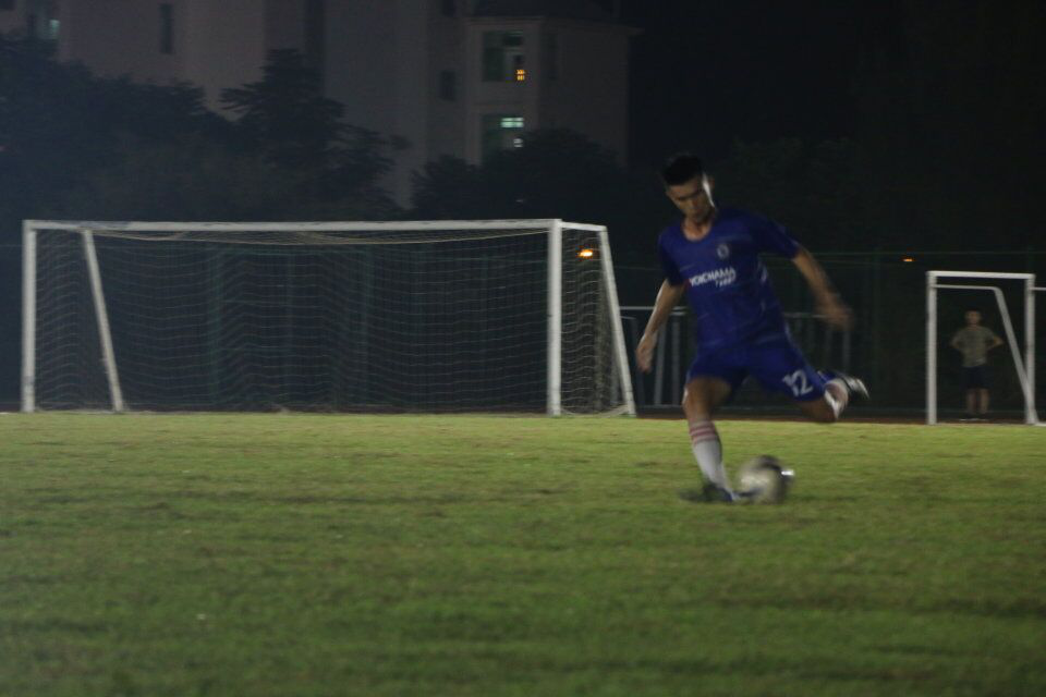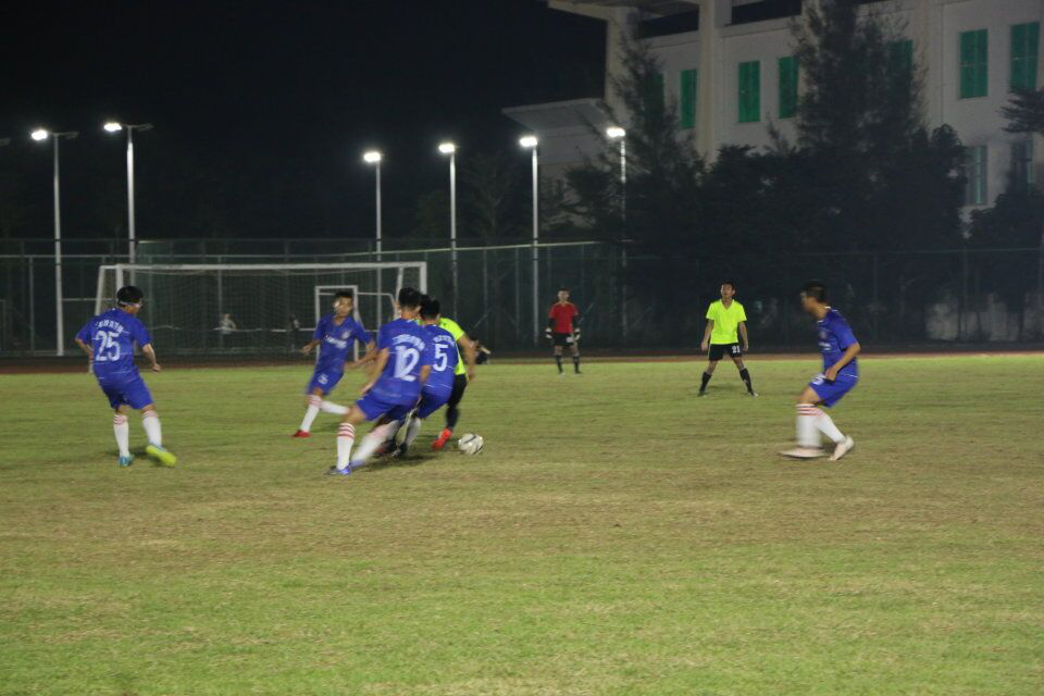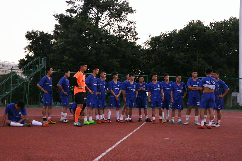 随着裁判的一声哨响,两队开始激烈的拼抢。在比赛进行到白热化状态时,公司球员虽大汗淋漓,少数球员身体有少许擦伤,但依然咬牙坚持继续进行比赛。公司球员的默契配合以及坚持不懈的精神,使同学们领略了足球风采的同时,更读懂了默契是彼此间的信任,而坚持则是一种人格信仰。
